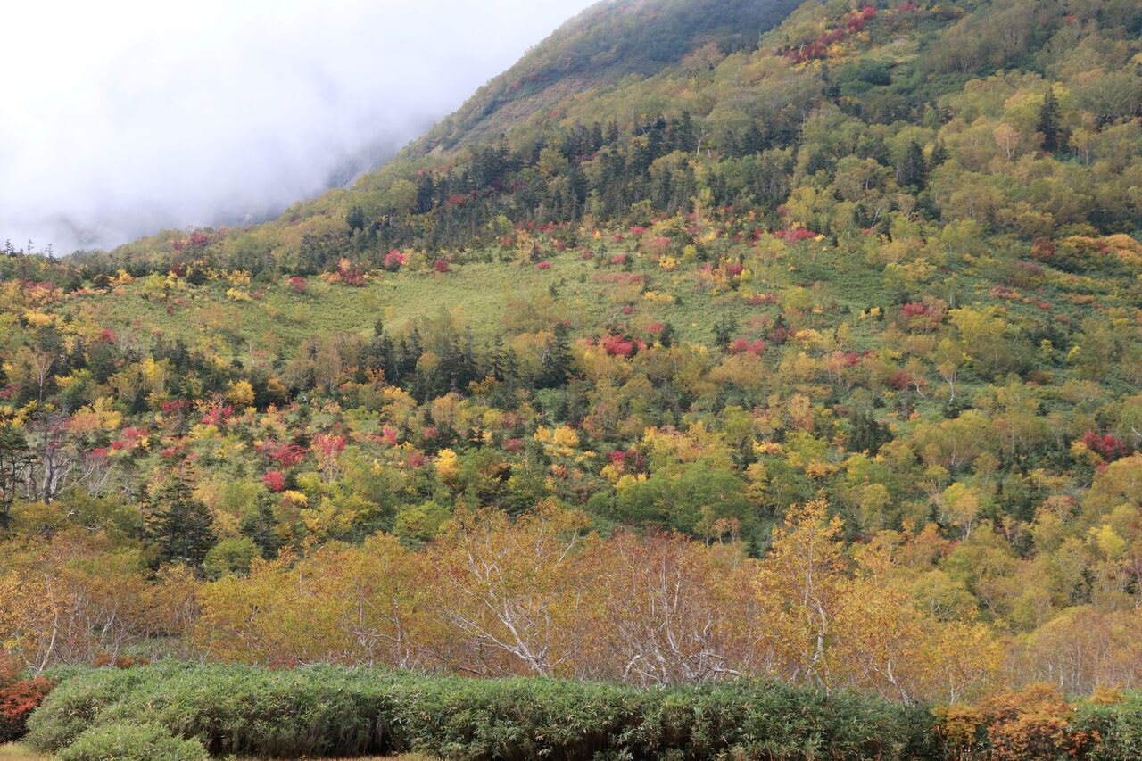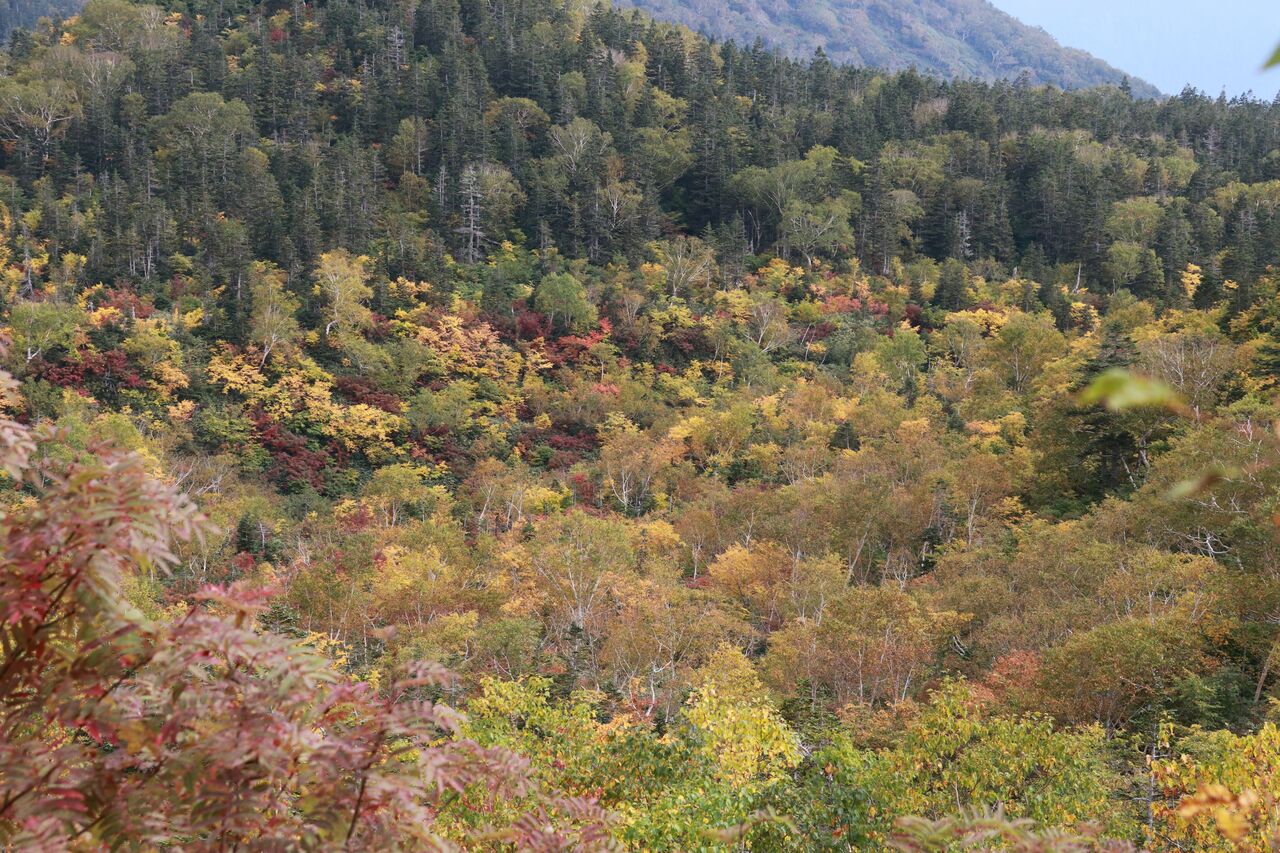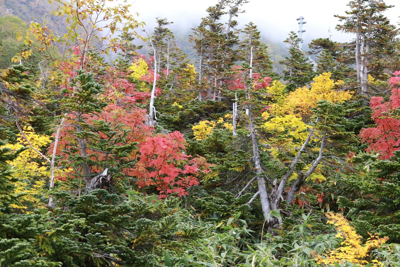 濃い緑の木は、おそらくオオシラビソ。これはずっと緑のままで、他の緑はこれから色づくのかもしれません。そしたら、今以上に鮮やかになりそうですね。
