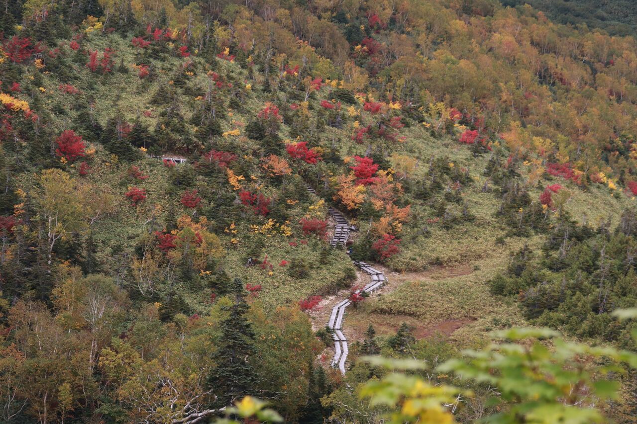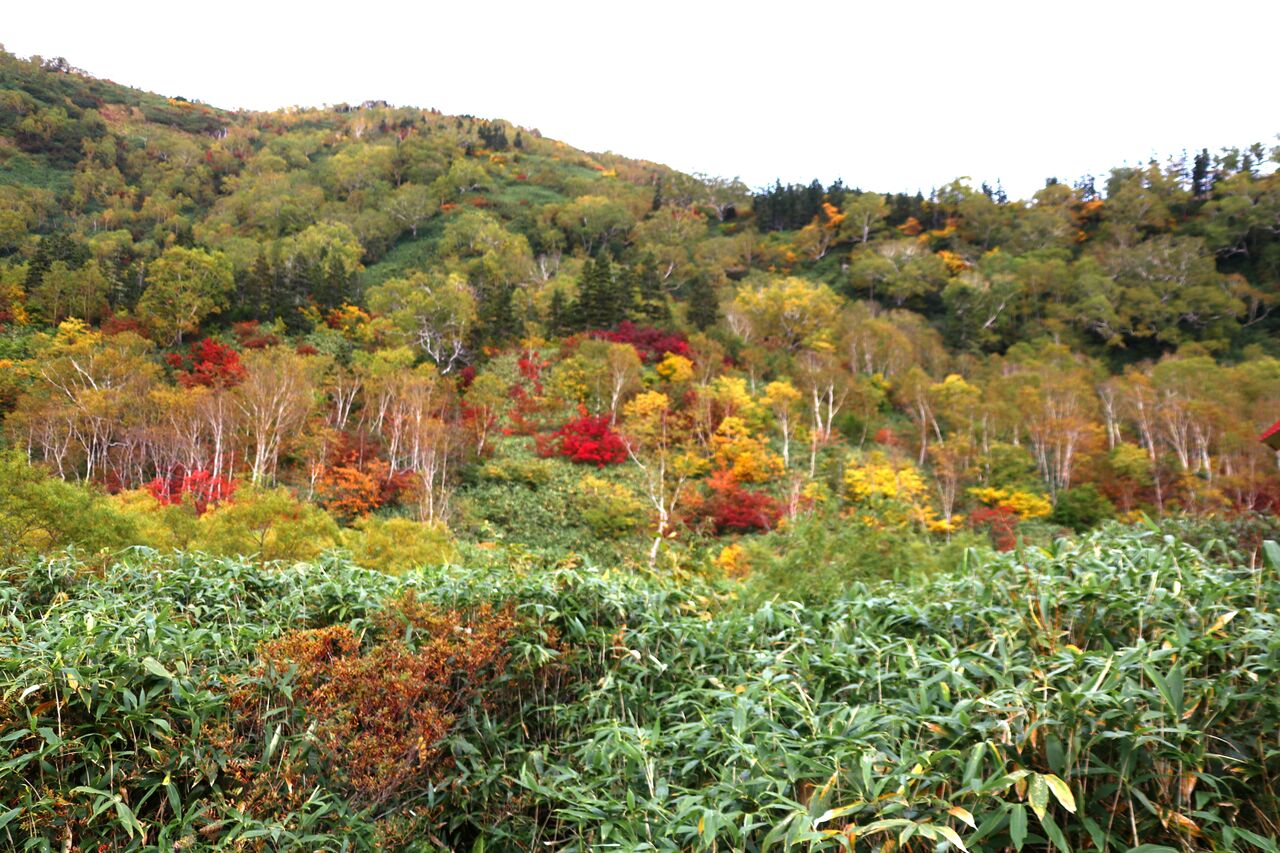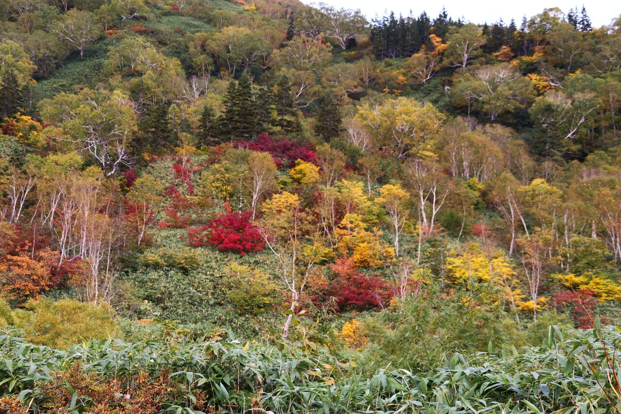 濃い緑の木は、おそらくオオシラビソ。これはずっと緑のままで、他の緑はこれから色づくのかもしれません。そしたら、今以上に鮮やかになりそうですね。