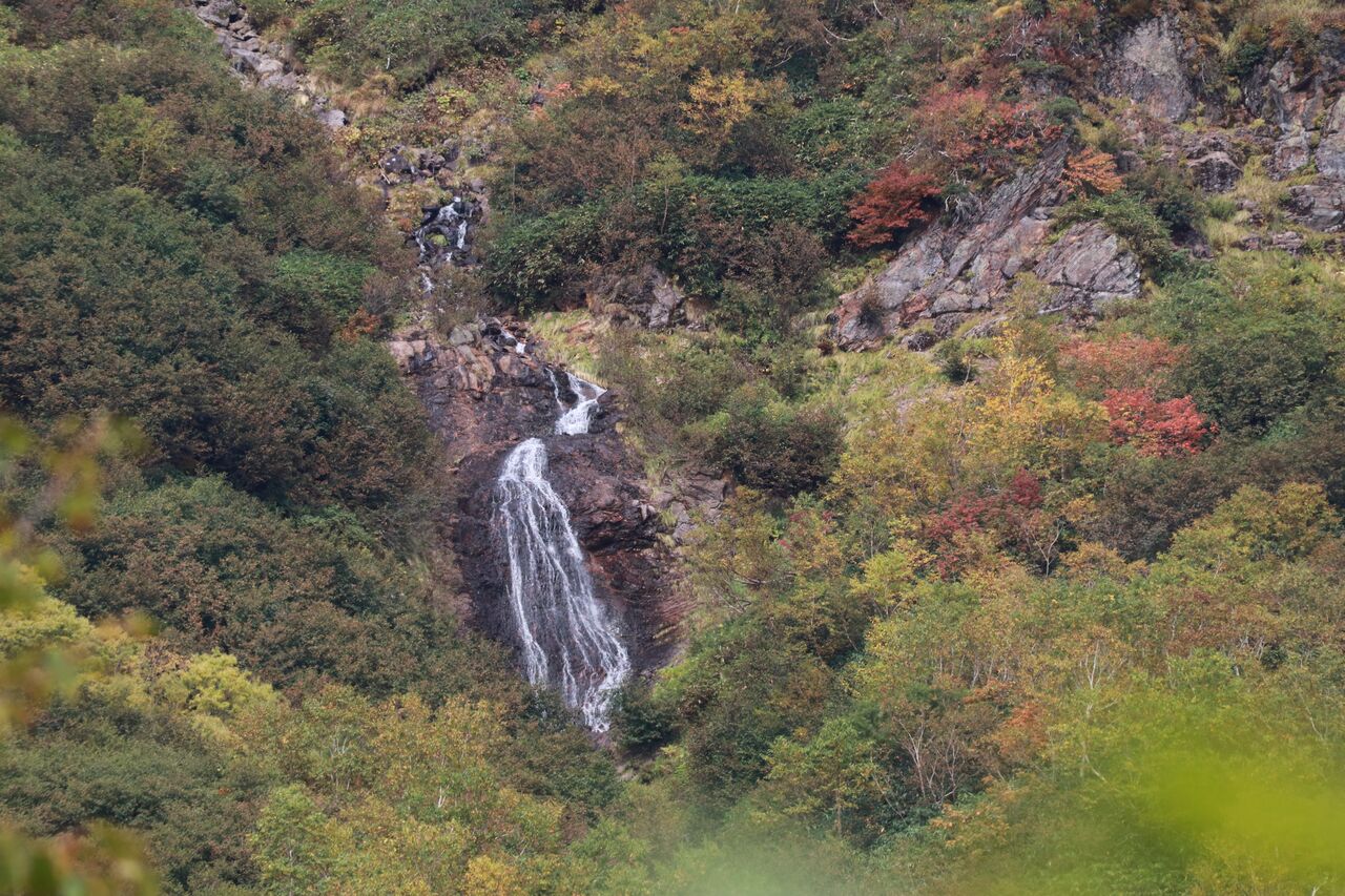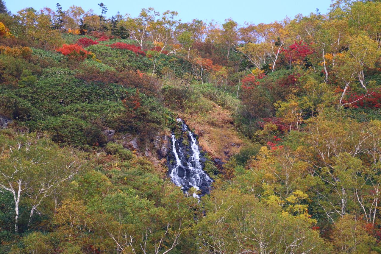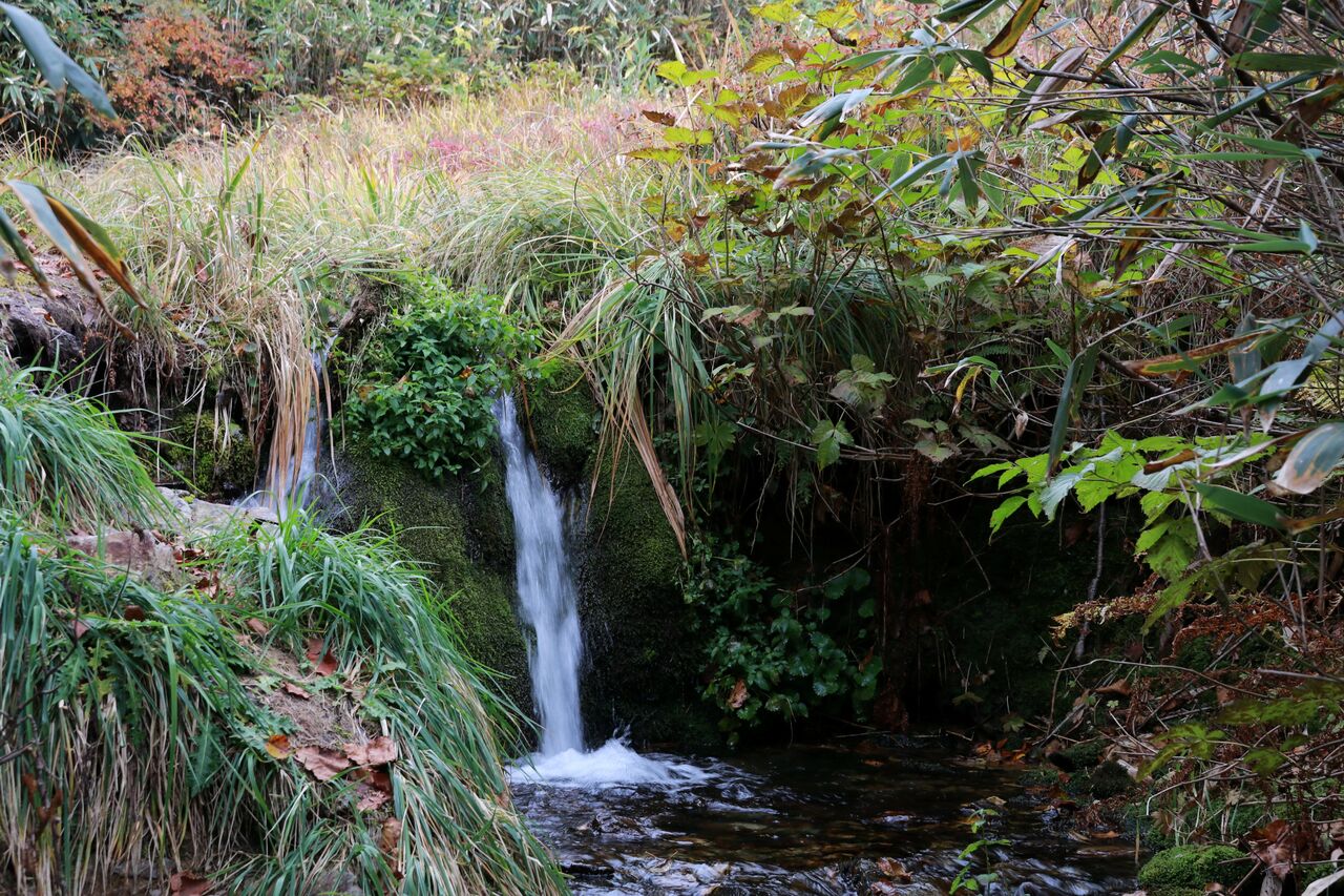 湿原を囲む山の中に滝を見つけました。湿地への水の供給源ですね。遠くて小さいので見過ごしている人も多いと思います。