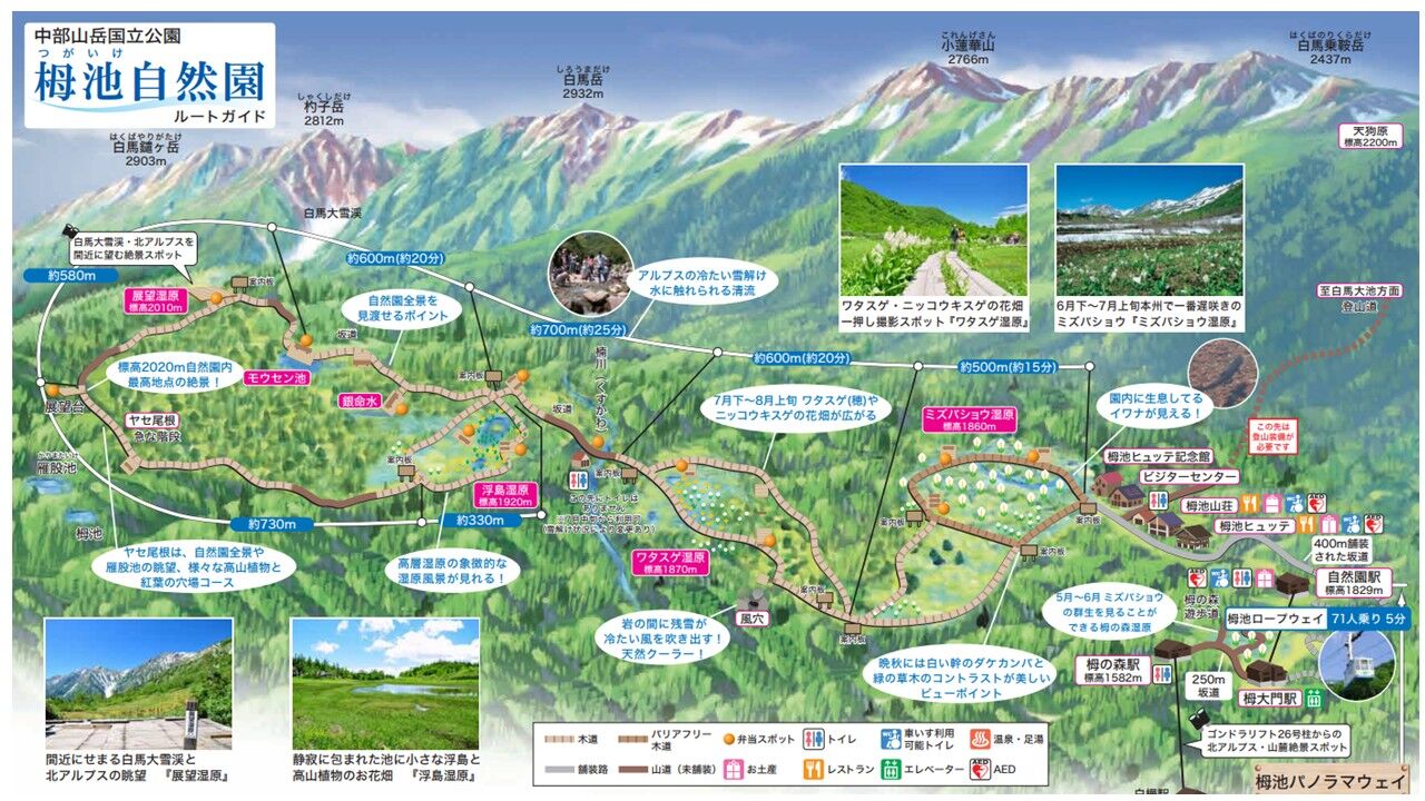 自然園に入ると杓子岳と白馬岳しか見えないので、山を見るならゴンドラとロープウェイの風景が貴重です。