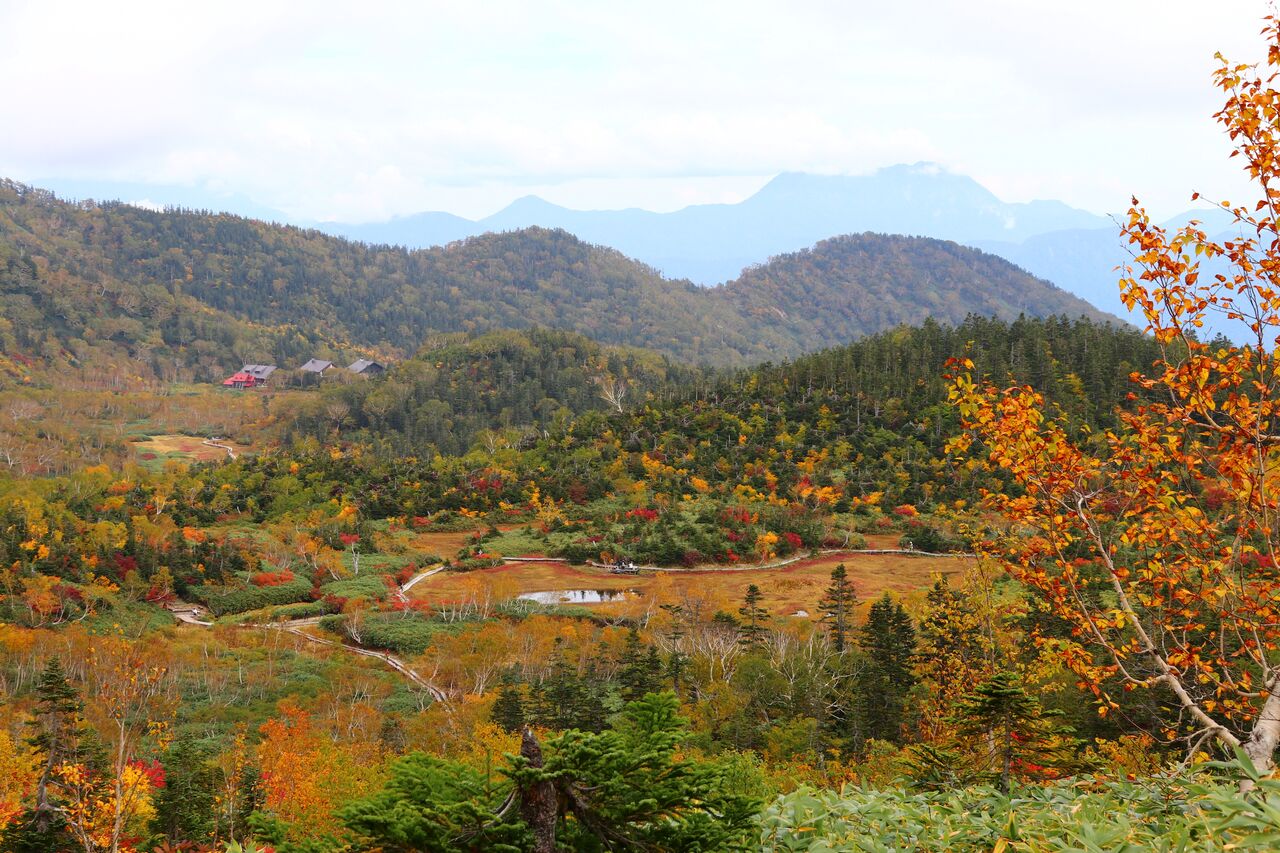 浮島湿原に出ました。ここから見る山の裾野の景色がとても美しかったです。