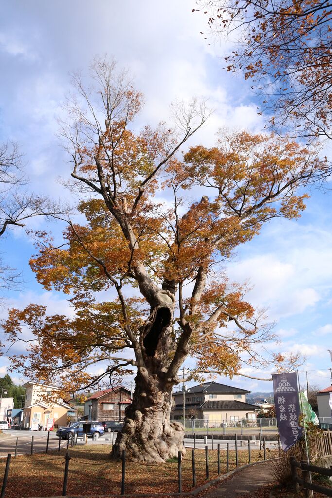 それからこちらはケヤキの木です。立派です。樹齢650年らしいです。