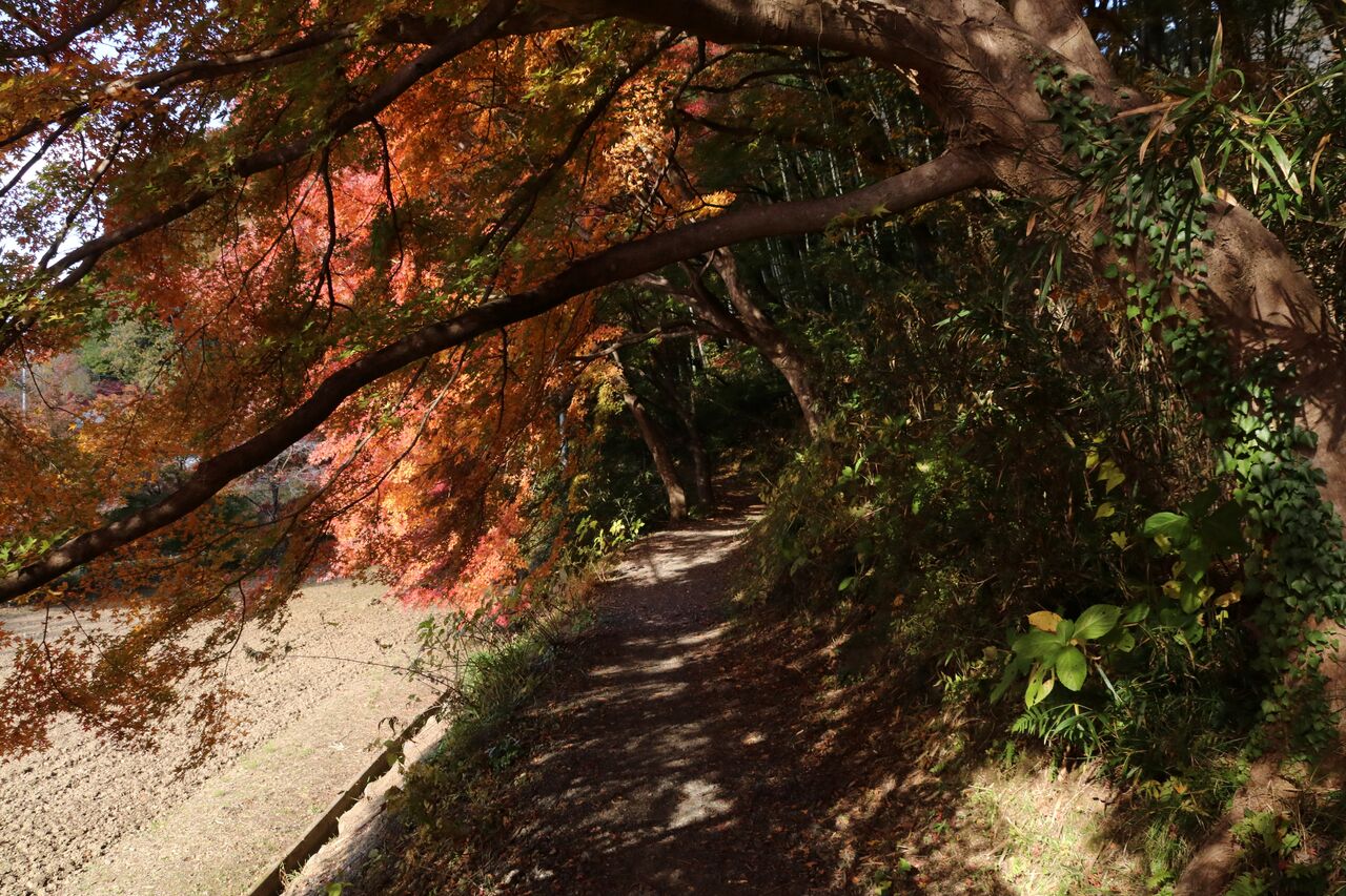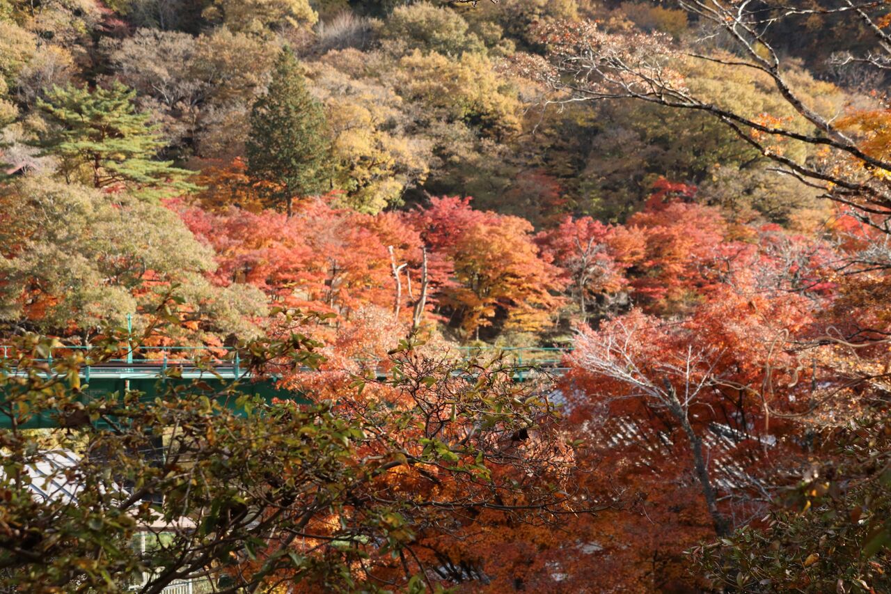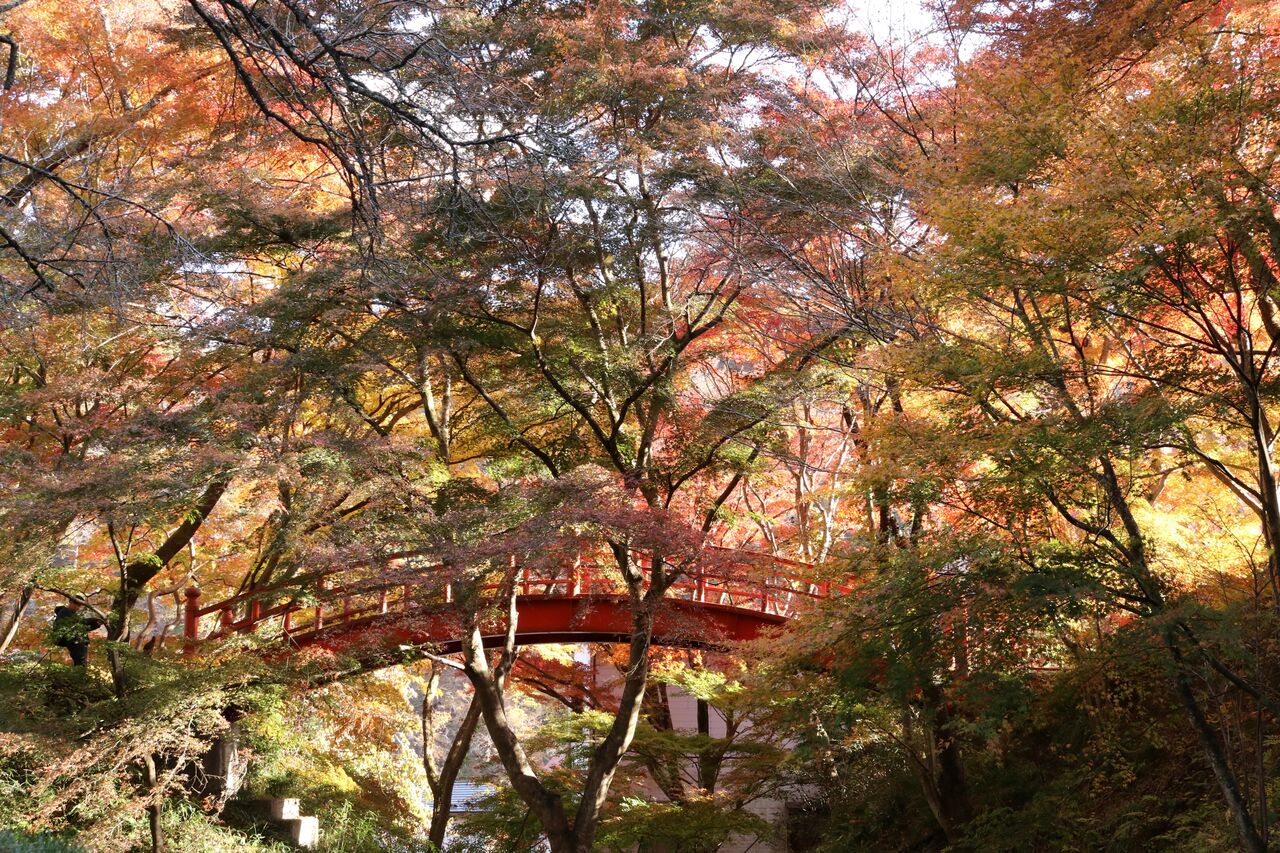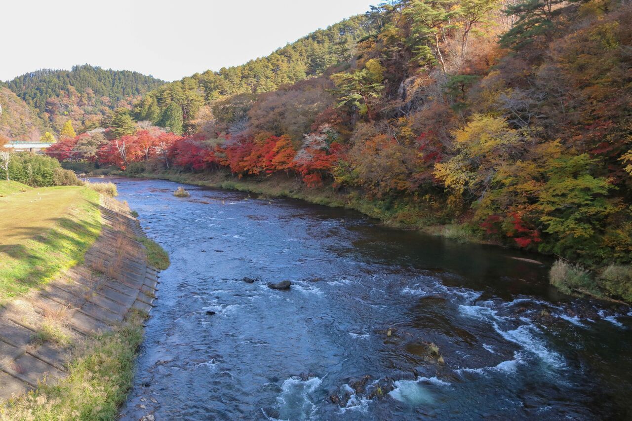 あゆつりの橋からの眺め。紅葉の所が日陰になってしまっていたのが残念です。