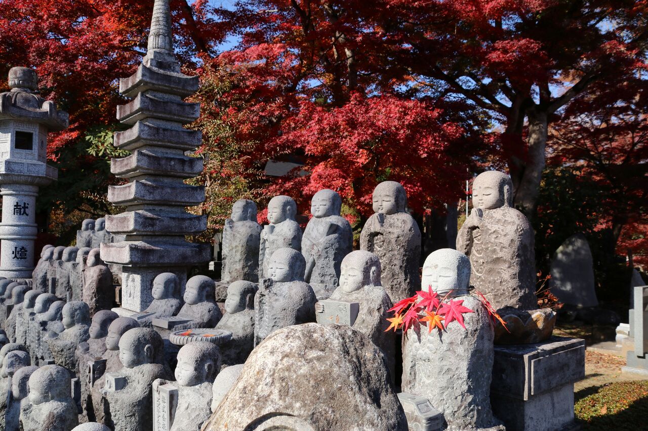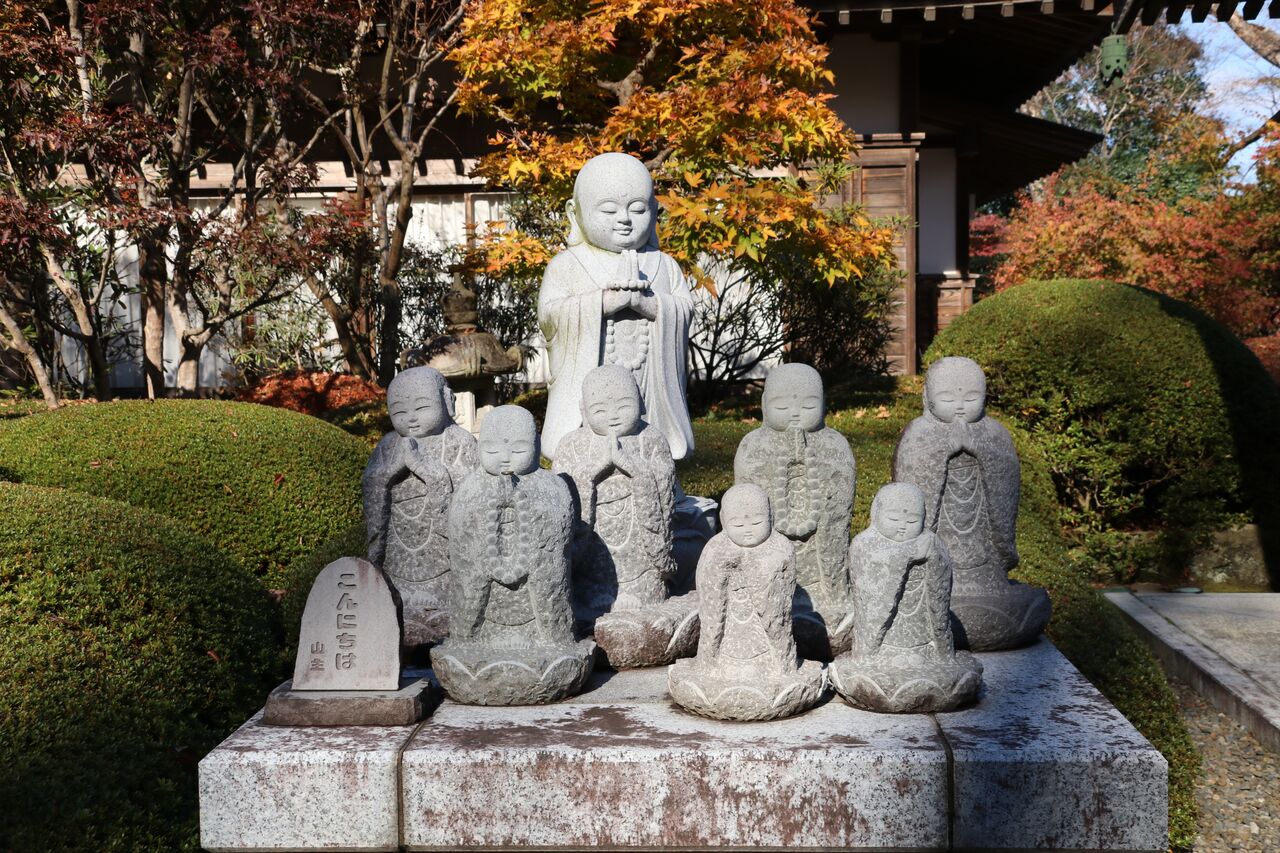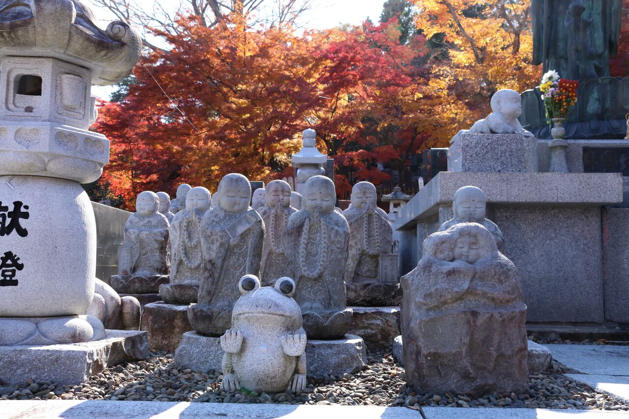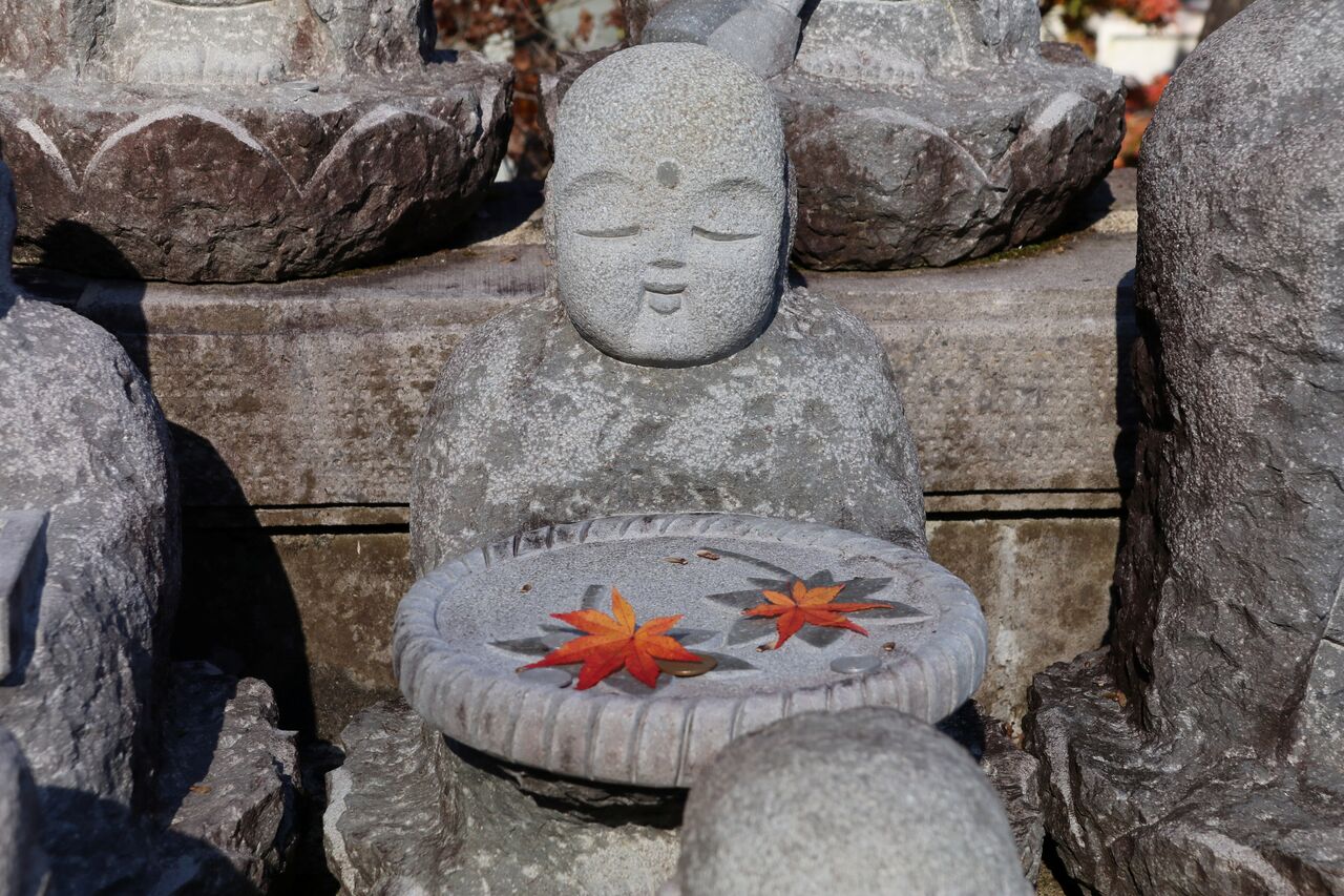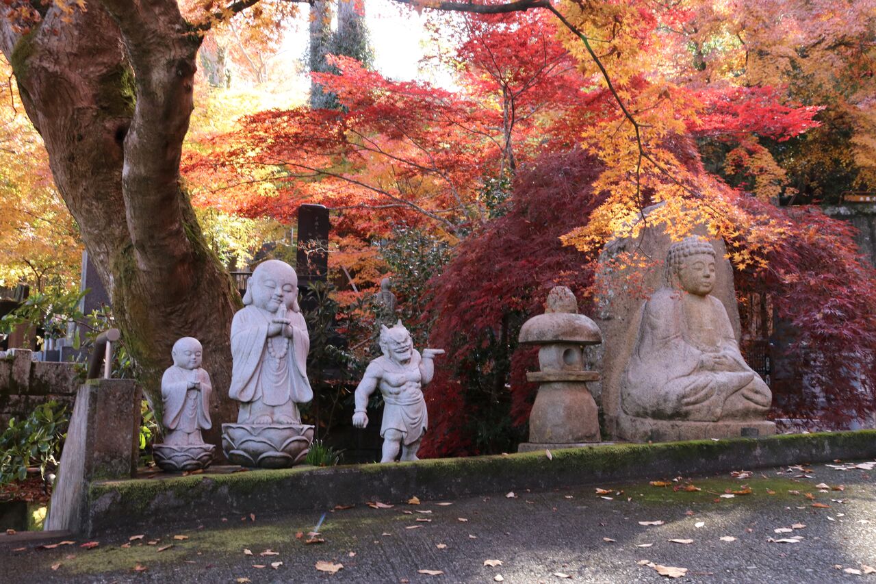 もみじ寺と呼ばれるだけあって紅葉も奇麗ですが、参道や境内にはお地蔵様や七福神など、たくさんの石像があって楽しませてくれます。