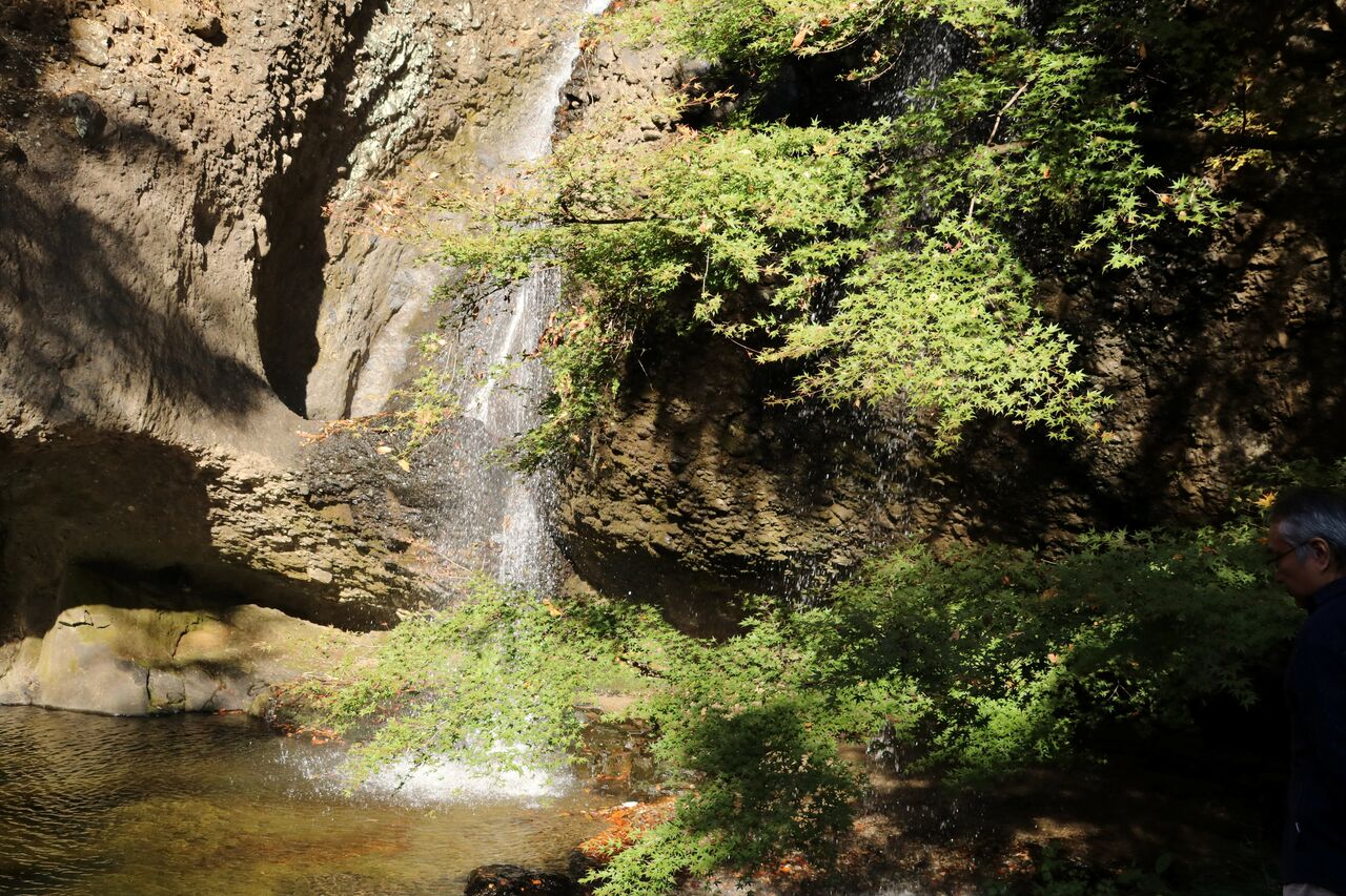 次に行ったのは「月待の滝」です。昨年9月にも行きました。滝そのものは私有物ではないと思いますが、滝を見るには「もみじ苑」というお蕎麦屋さんの敷地に入らなければなりません。「もみじ苑」という名前から分る通り、紅葉が美しいはず。昨年は9月でしたから、はなから紅葉は望めませんでしたが、今回は紅葉を狩ってやろうと・・・