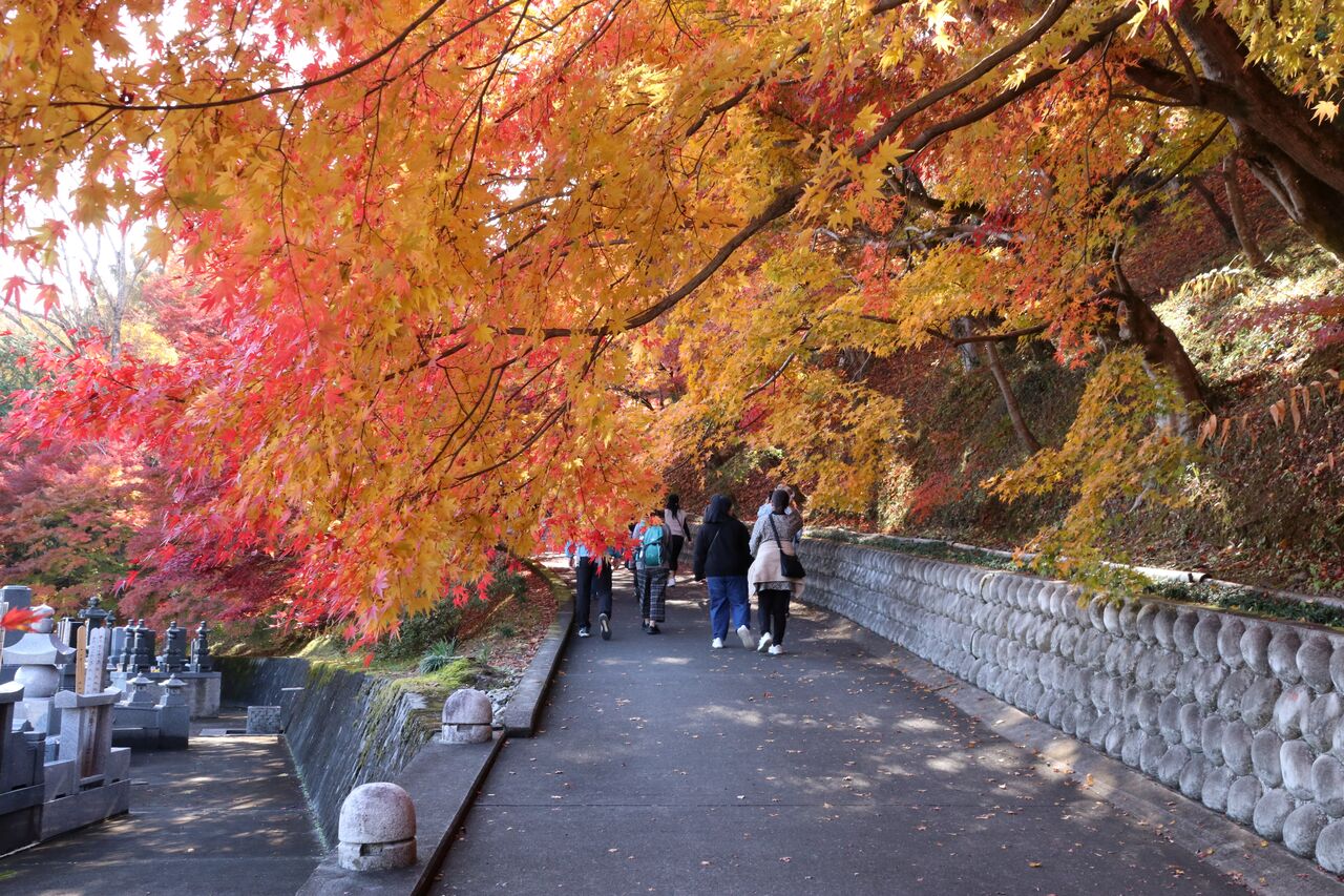 駐車場からすぐに参道に上がれます。参道の紅葉が見事です。