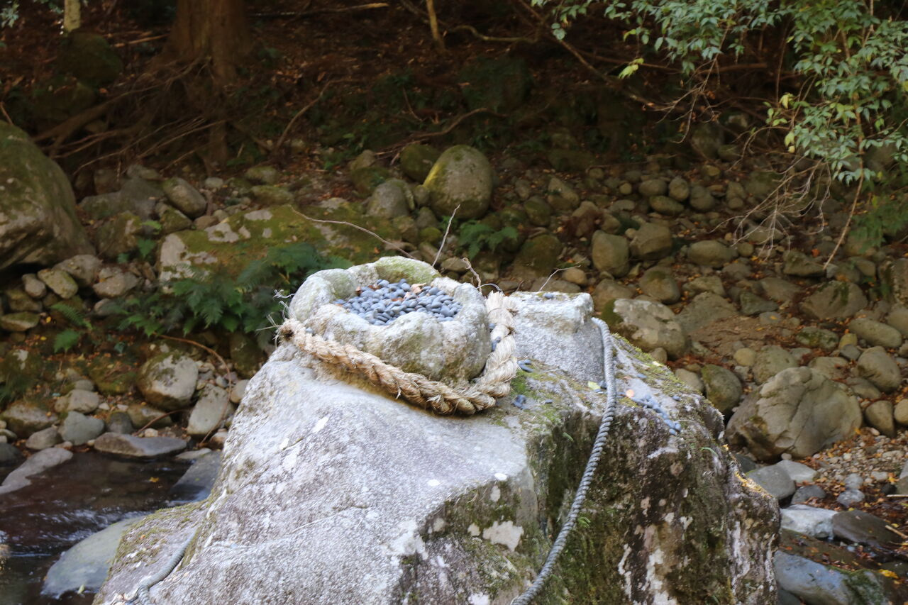 大願と大岩を掛けてます。黒い石(願い石)が置いてあって、それを持った手を合わせてお祈りし、大きな岩に投げてうまく乗っかると願い事が叶うらしいです。