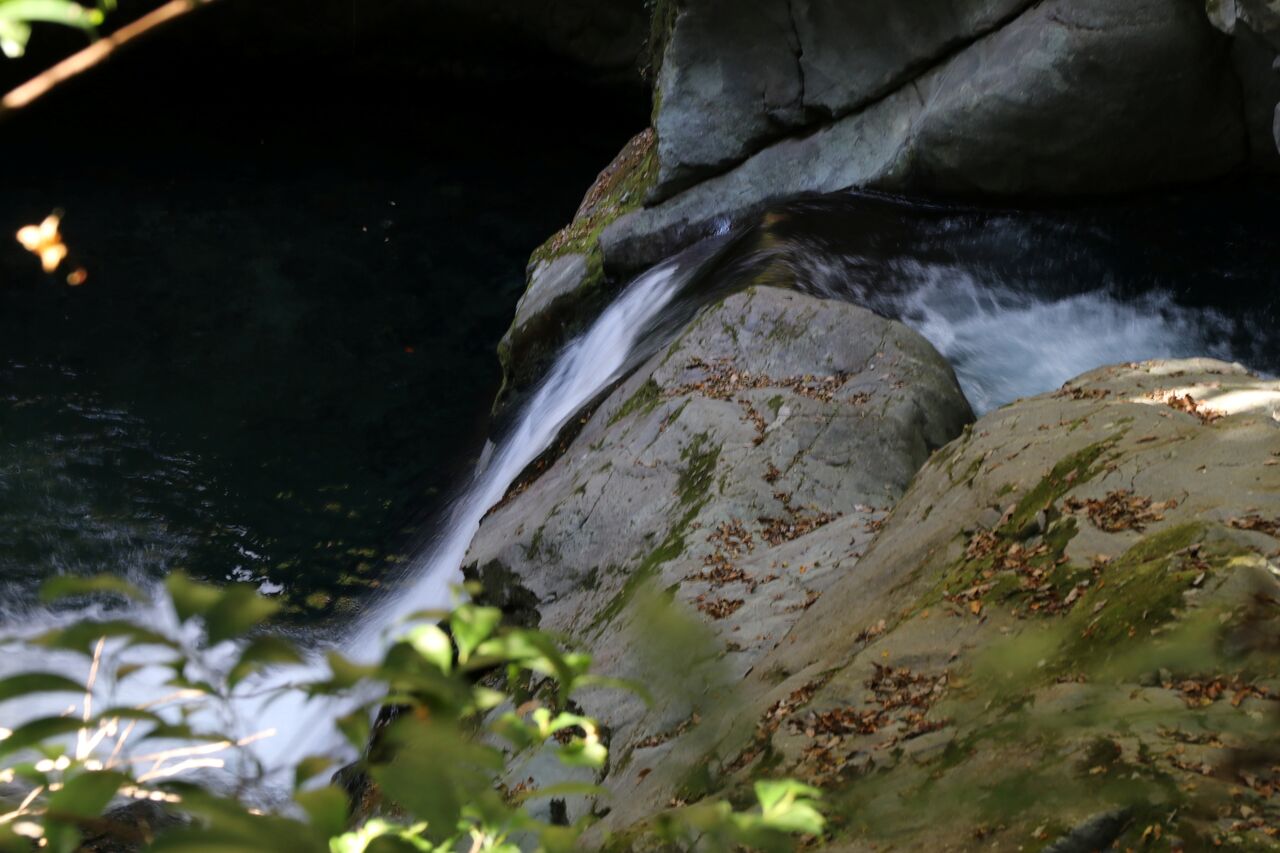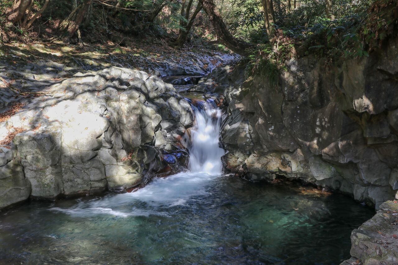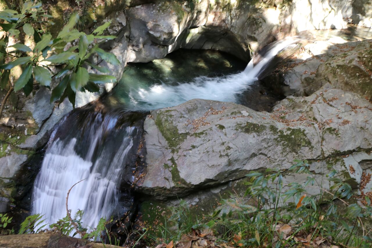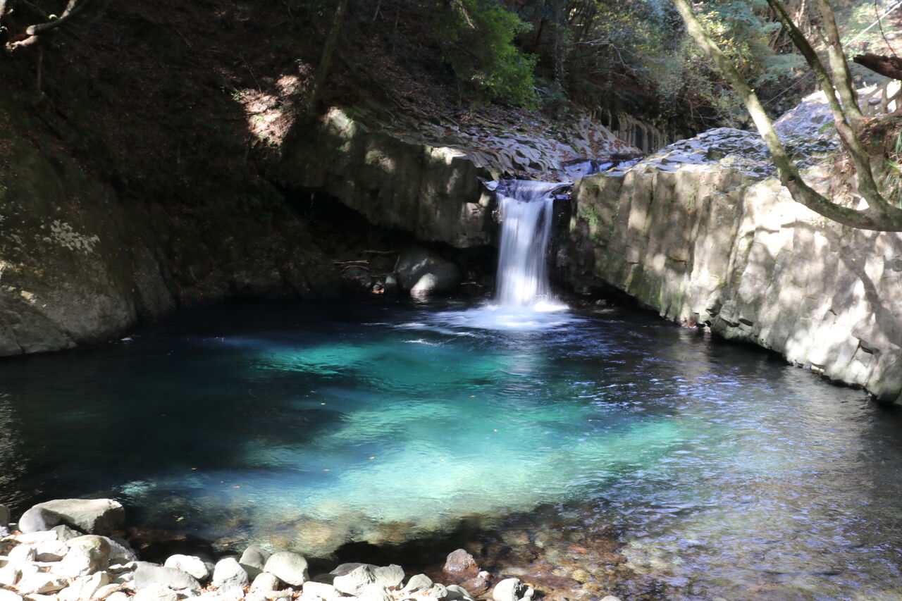 蛇滝です。日が当たっている部分の水のエメラルドグリーンが奇麗です。
