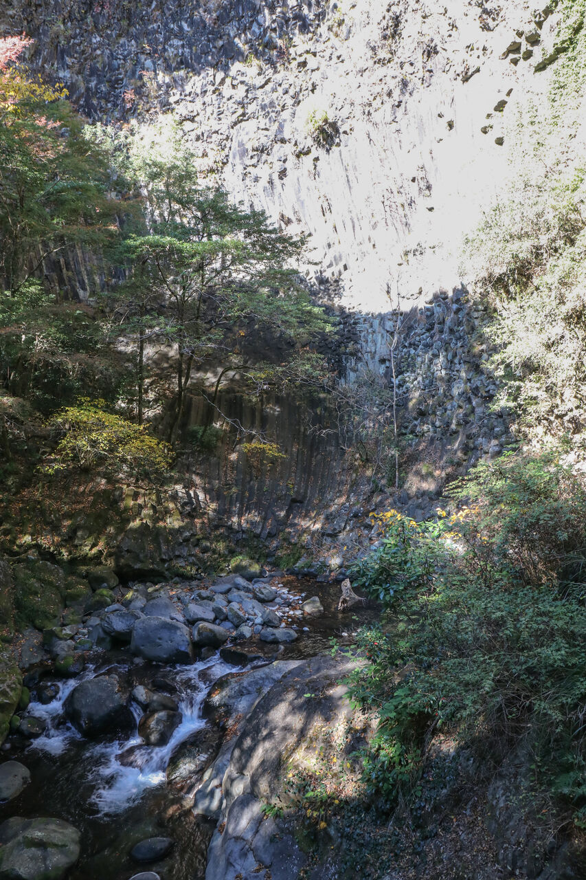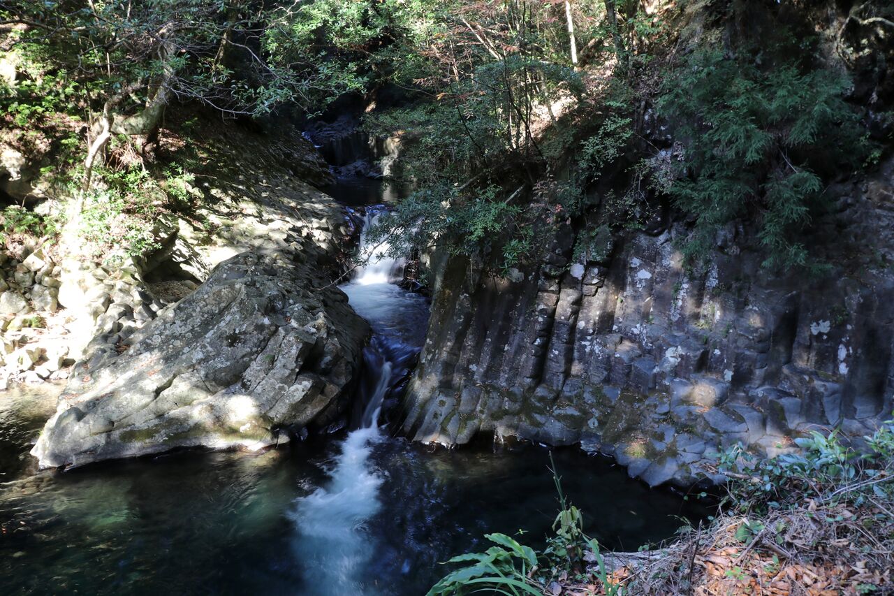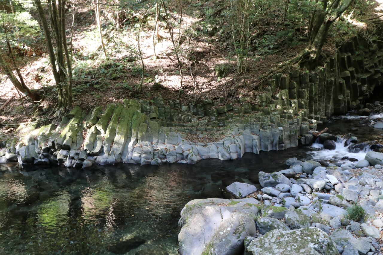 釜滝です。ここにも柱状節理が見れますね。(滝の左)