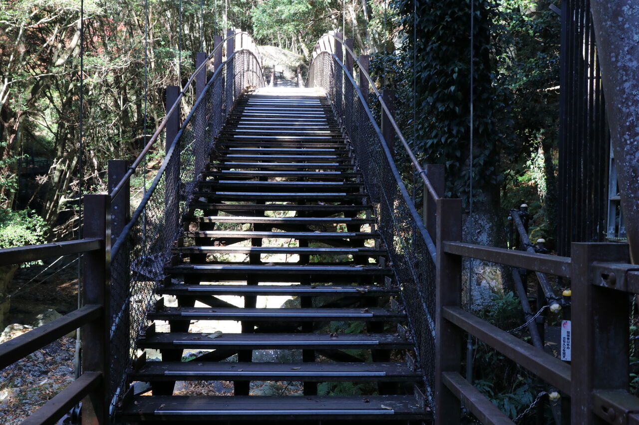 釜滝が七滝最上流の滝です。この上に猿田淵があります。猿田淵に行くには「滝々段々橋」を上っていきます。もうおわかりだと思いますが、読み方は「ダルダルダンダン橋」です。