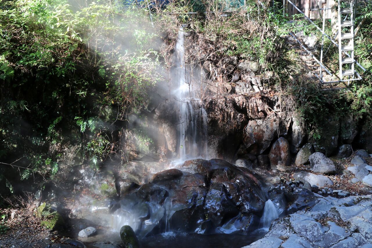 初景滝に向かって遊歩道を歩きます。すると、湯気が・・・