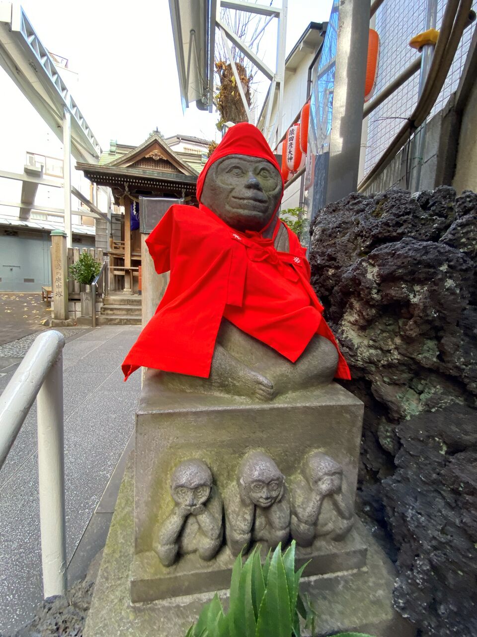 これが駅名やこの辺りの地名となっている庚申塚(こうしんづか)のようです。庚申は「このえさる」と読みます。そこから猿が神使とされたことから猿田彦大神を祀っています。猿田彦大神は最近聞き覚えがあります。そうです、先日行った河津七滝に猿田淵という場所がありましたね。(河津七滝のブログはこちらをクリック☞12/8ブログ)
