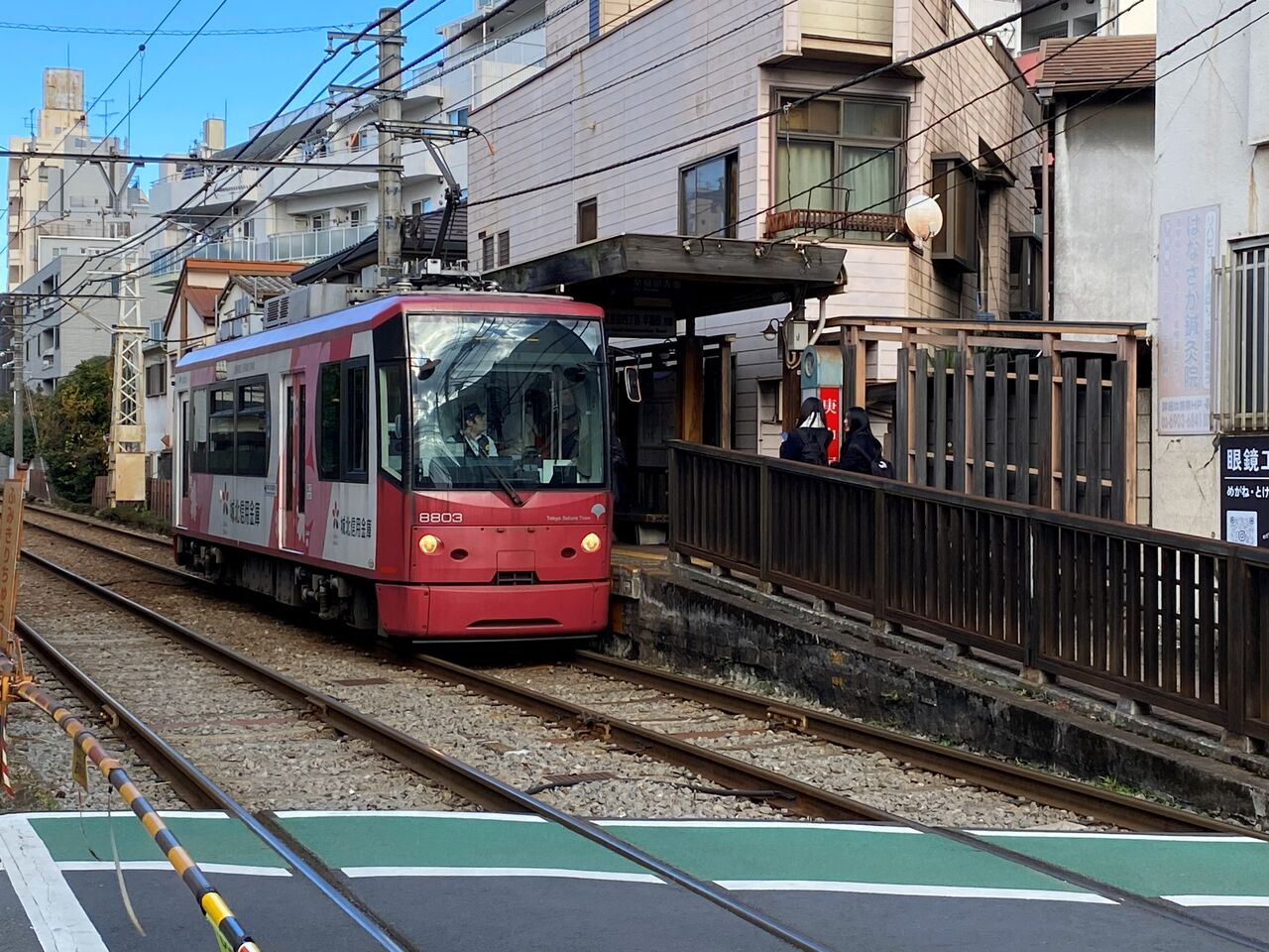 しばらく行くと都電荒川線にぶつかりました。庚申塚駅です。