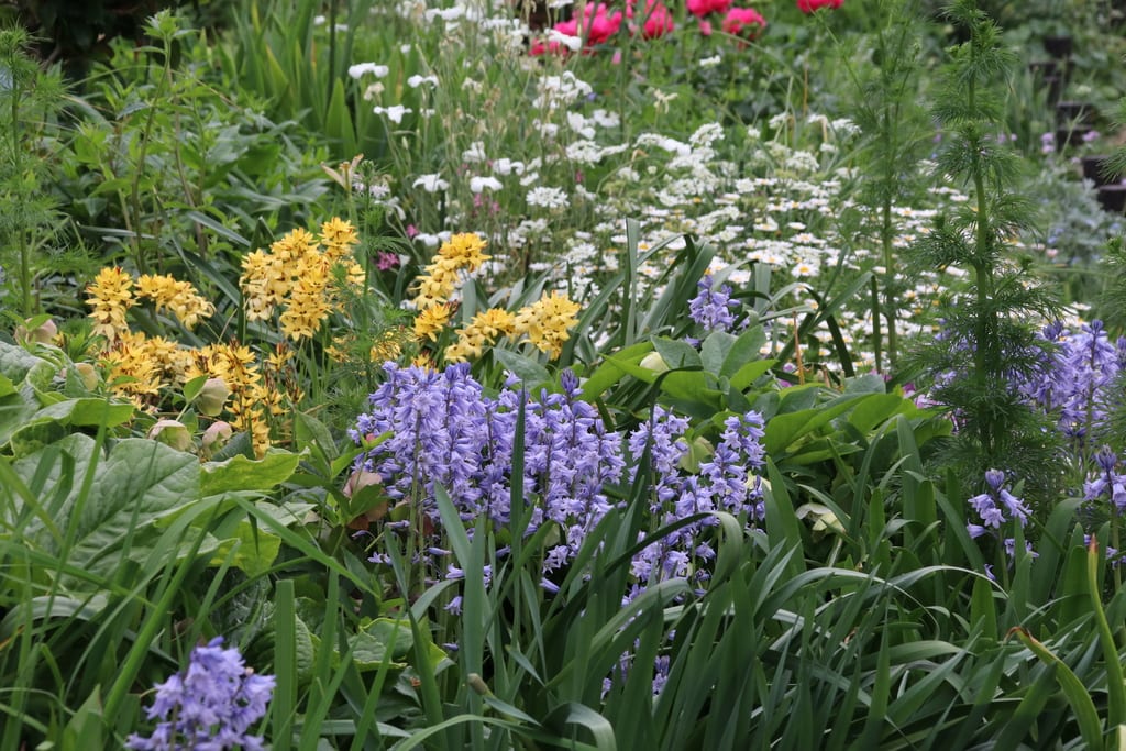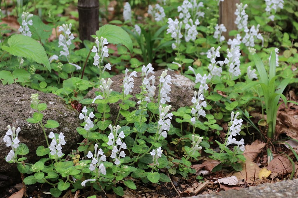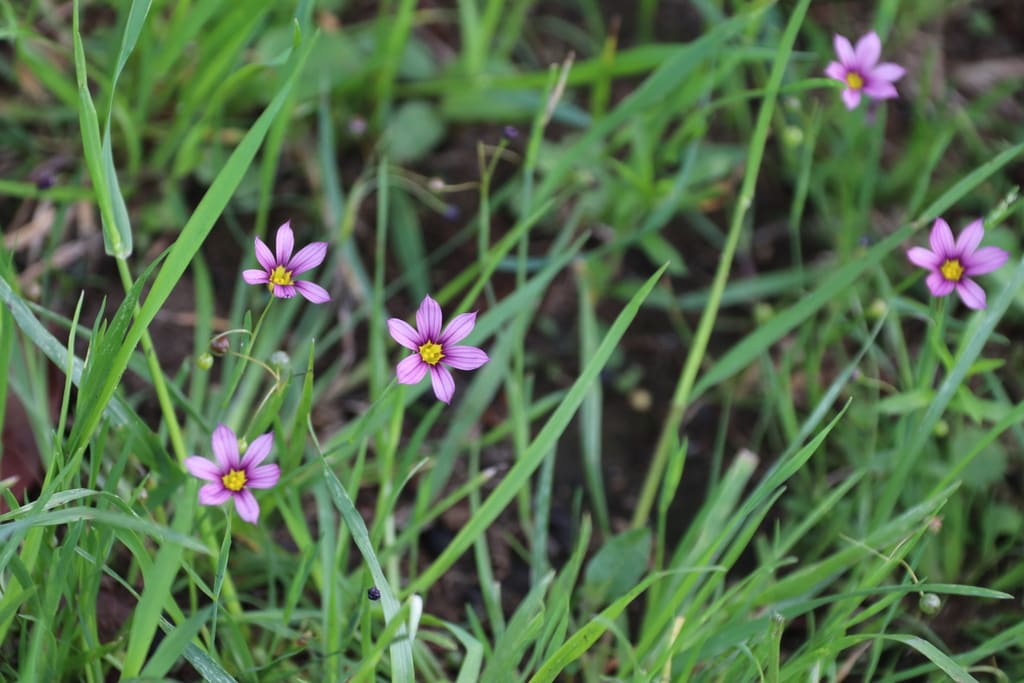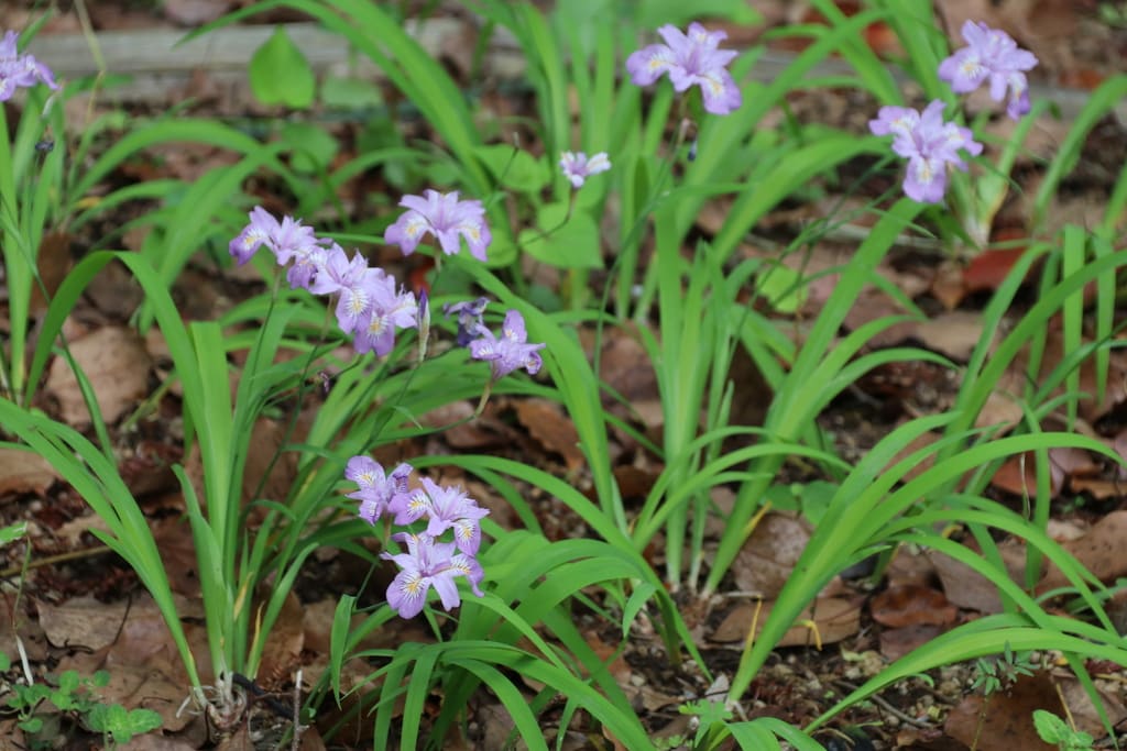シランがシロバナシランとコラボで庭を彩っていました。