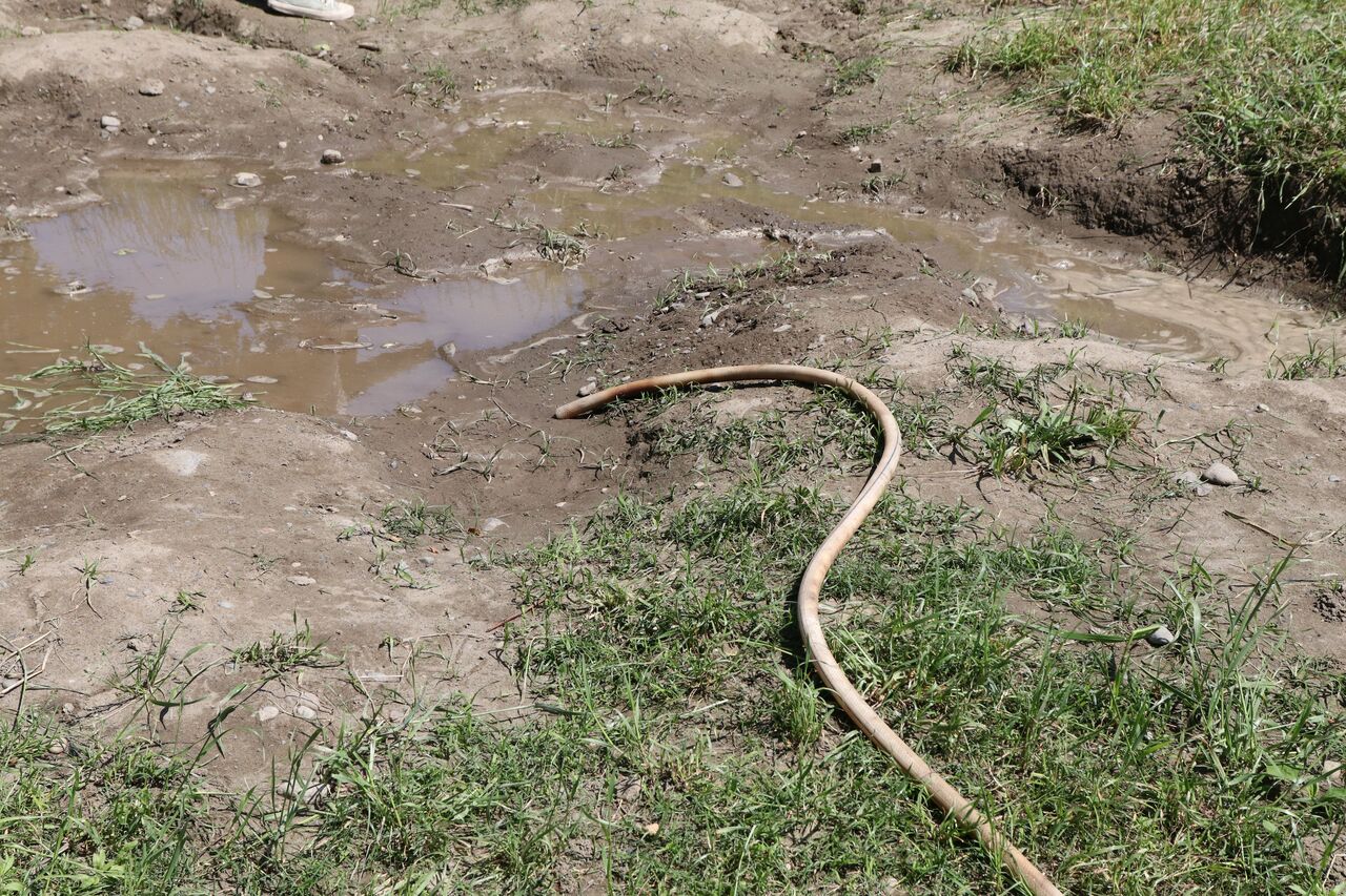 ここの窪地に水を引いて、泥んこ遊びをしようという目論見のようです。