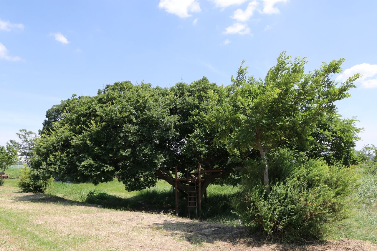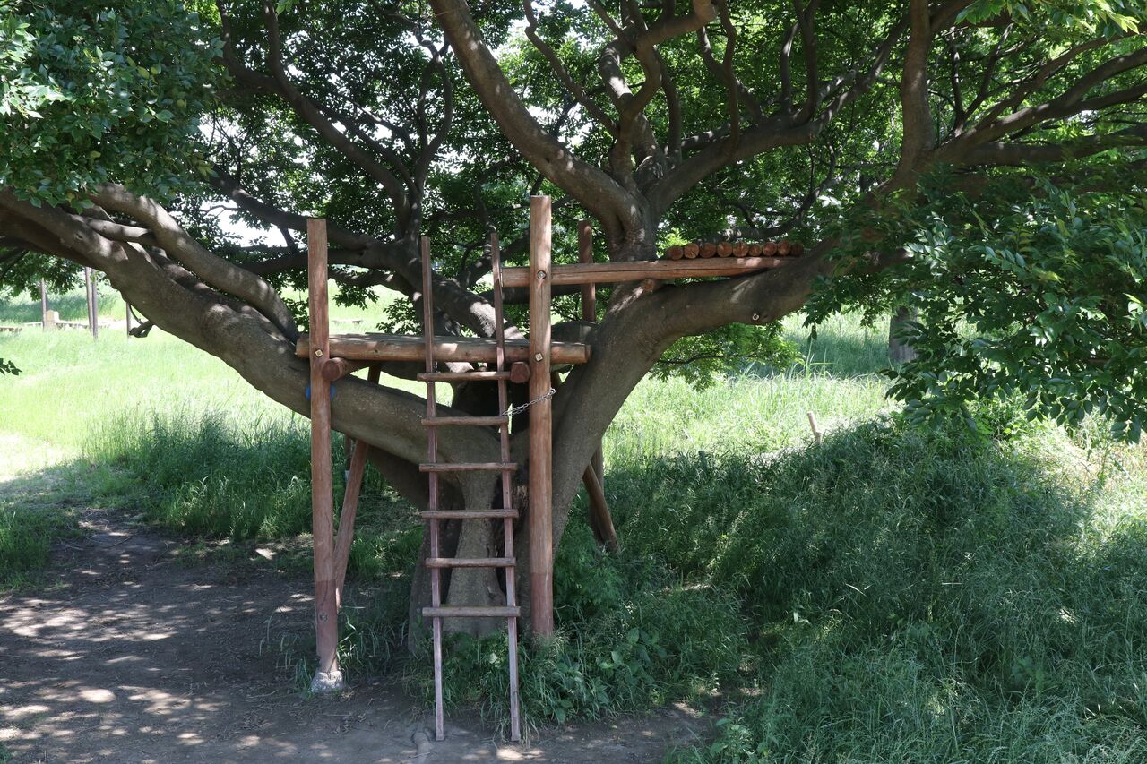 こちらの木は、上にツリーハウスとまでは行きませんが、昇って遊べるようになっています。