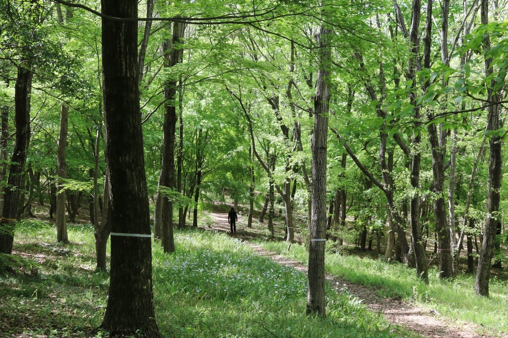 「こもれびの池」は、公園の最北端です。池の北側をぐるっと回って南下します。途中から「こもれびの丘」に入り、一旦西に向かいます。自然林の中を進む小径です。
