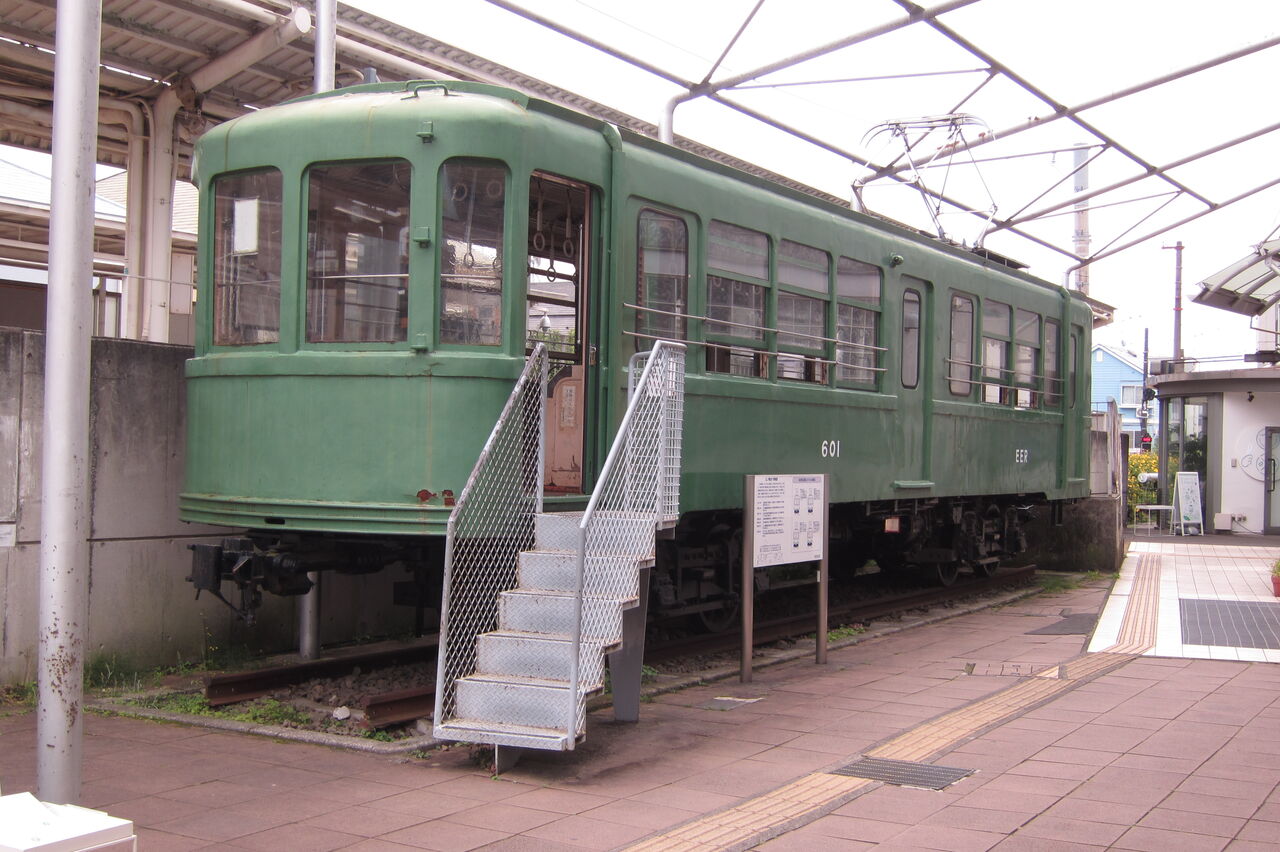 宮の坂駅のホームの横には、昔の車両が展示されています。中にも入れます。