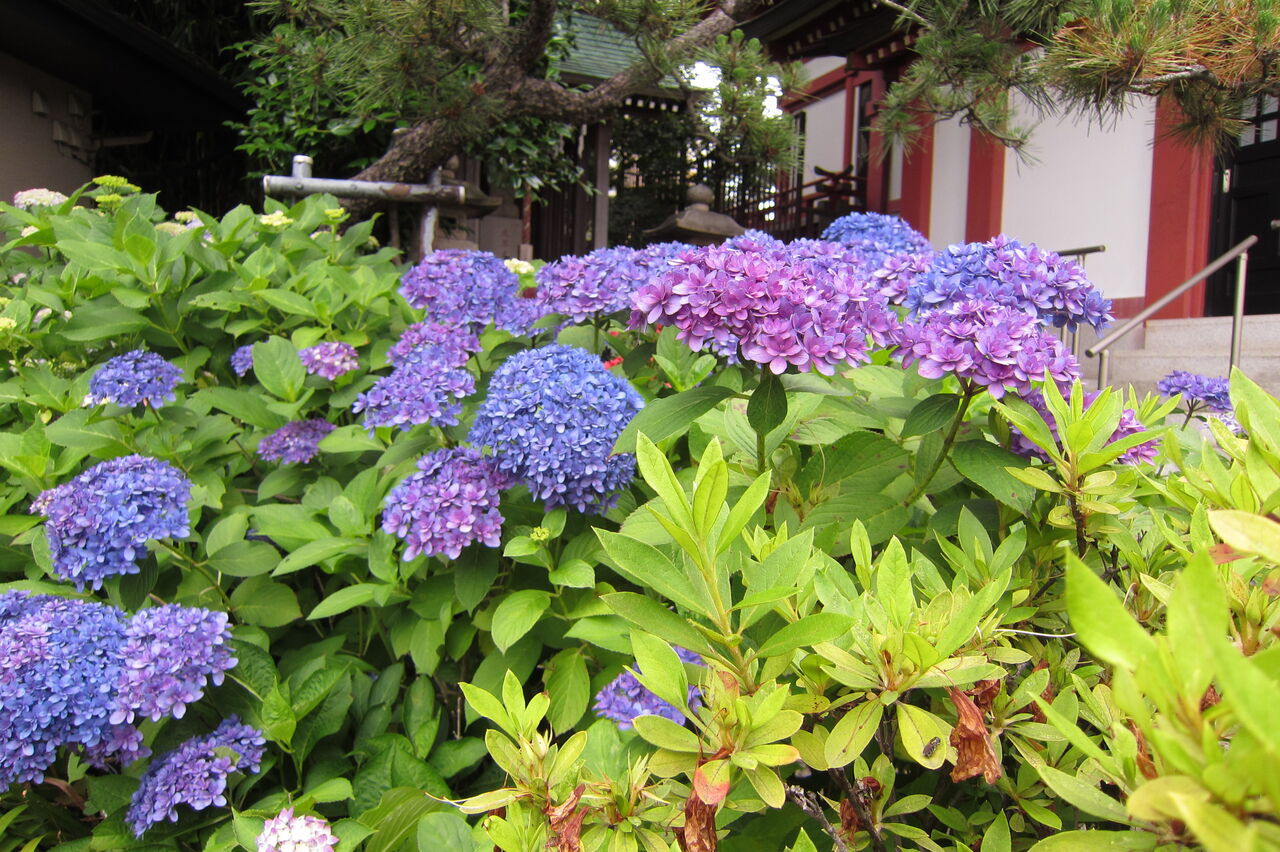 サツキとアジサイがきれいに咲いていました。