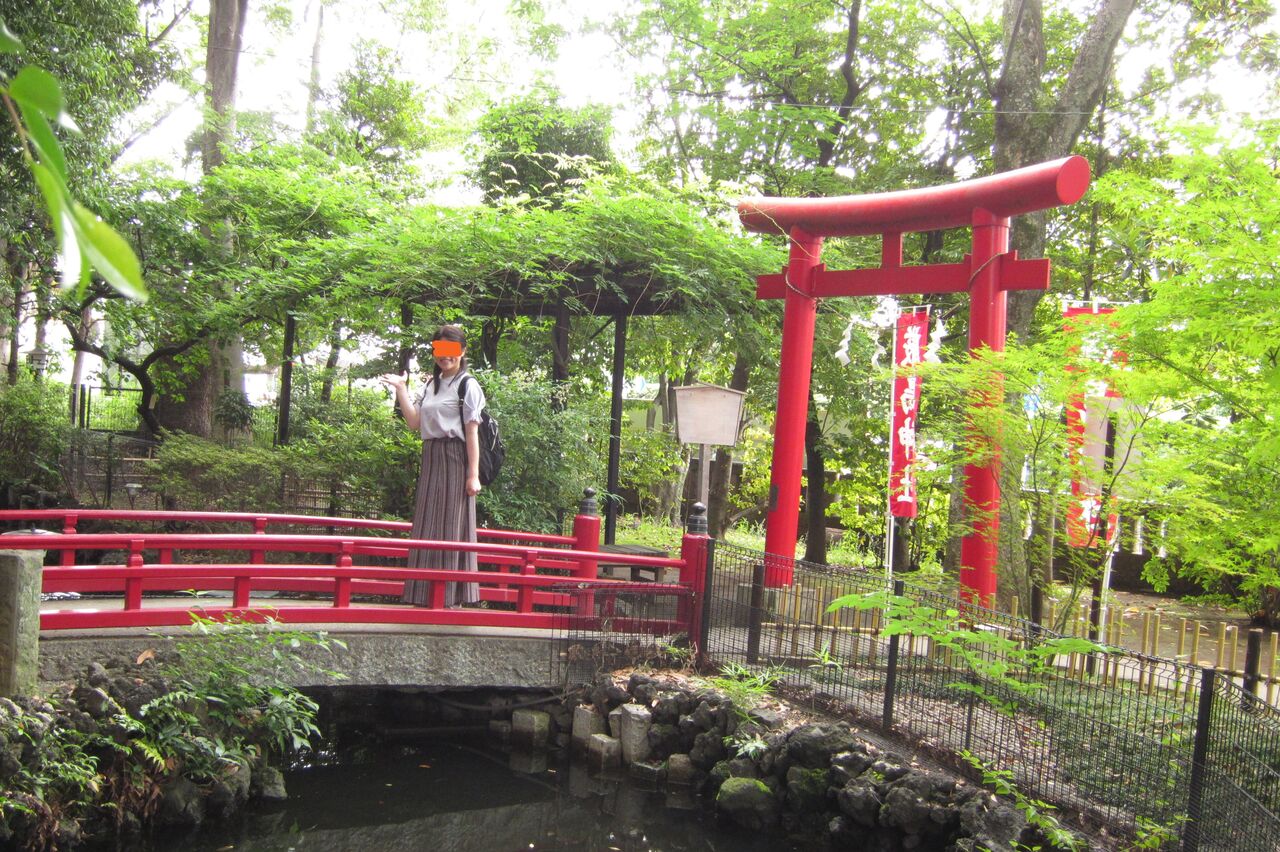 土俵の下にある鹿島神社は、池のある風情のある神社です。