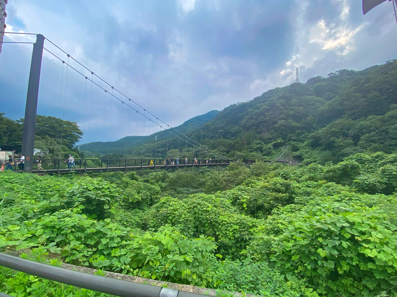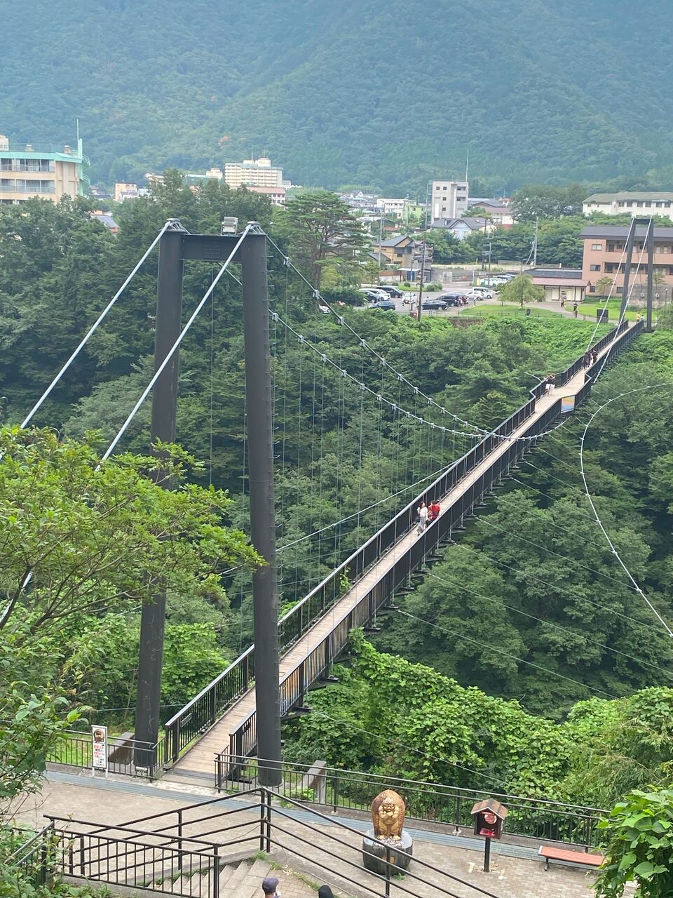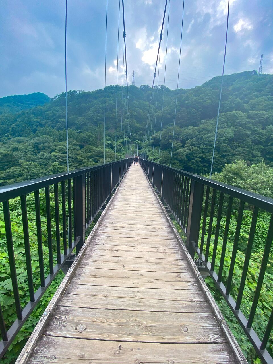 川の下流に向けて10分弱ほど歩くと「鬼怒盾岩大吊り橋」があります。
