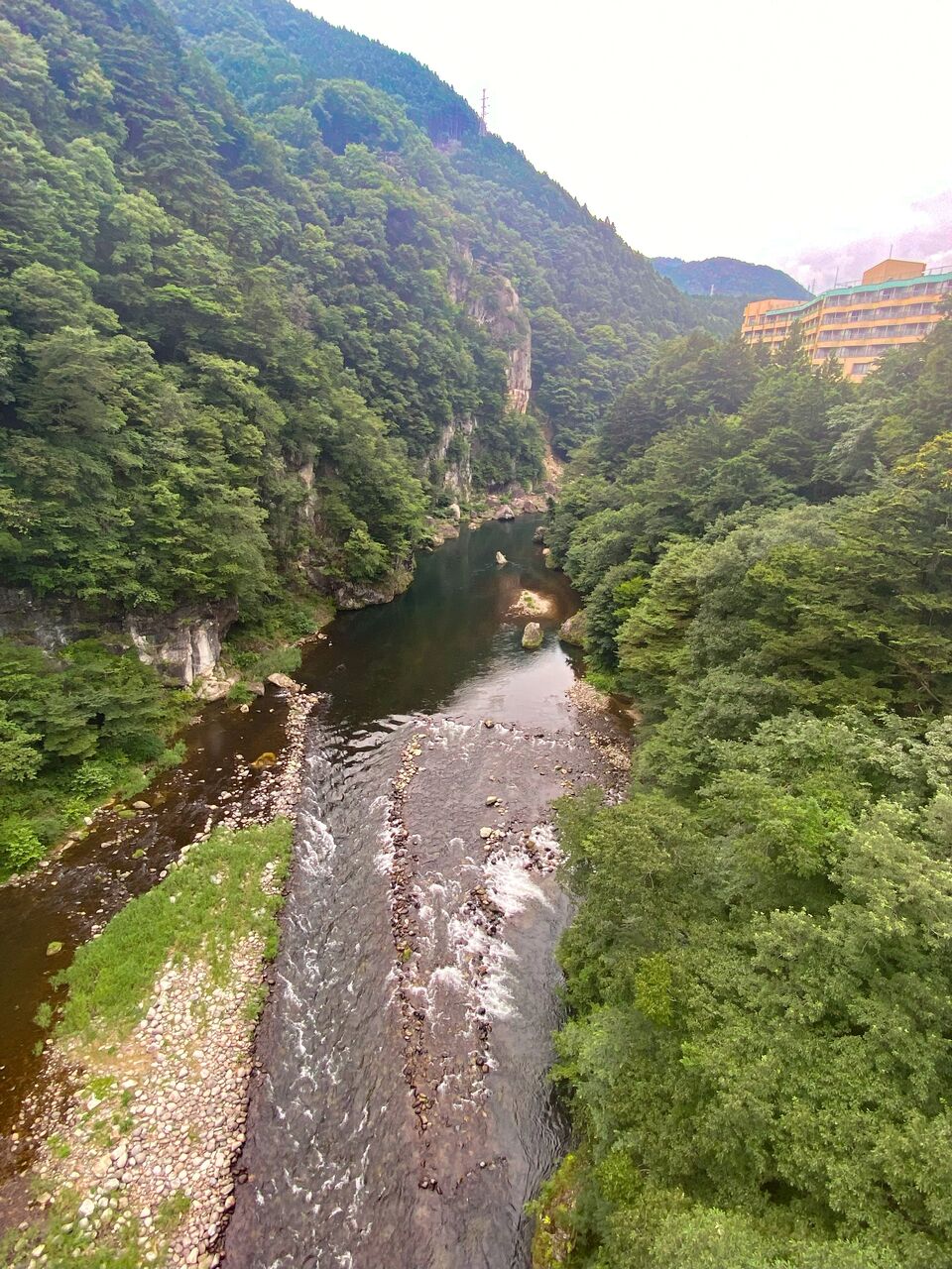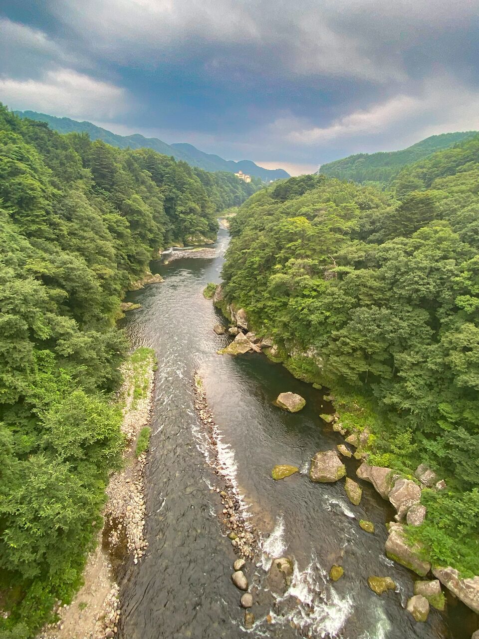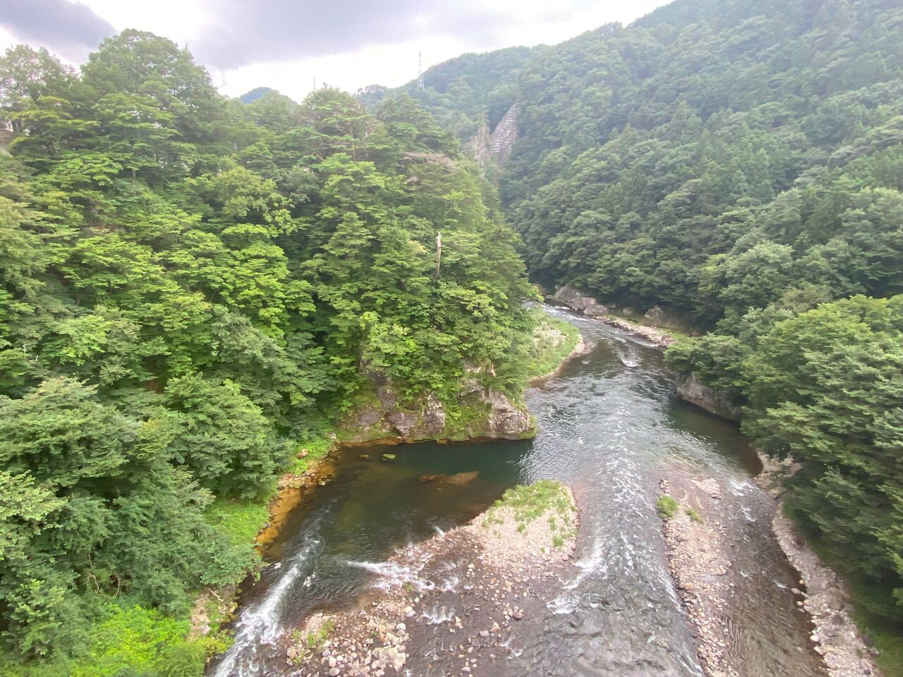 川の下流に向けて10分弱ほど歩くと「鬼怒盾岩大吊り橋」があります。