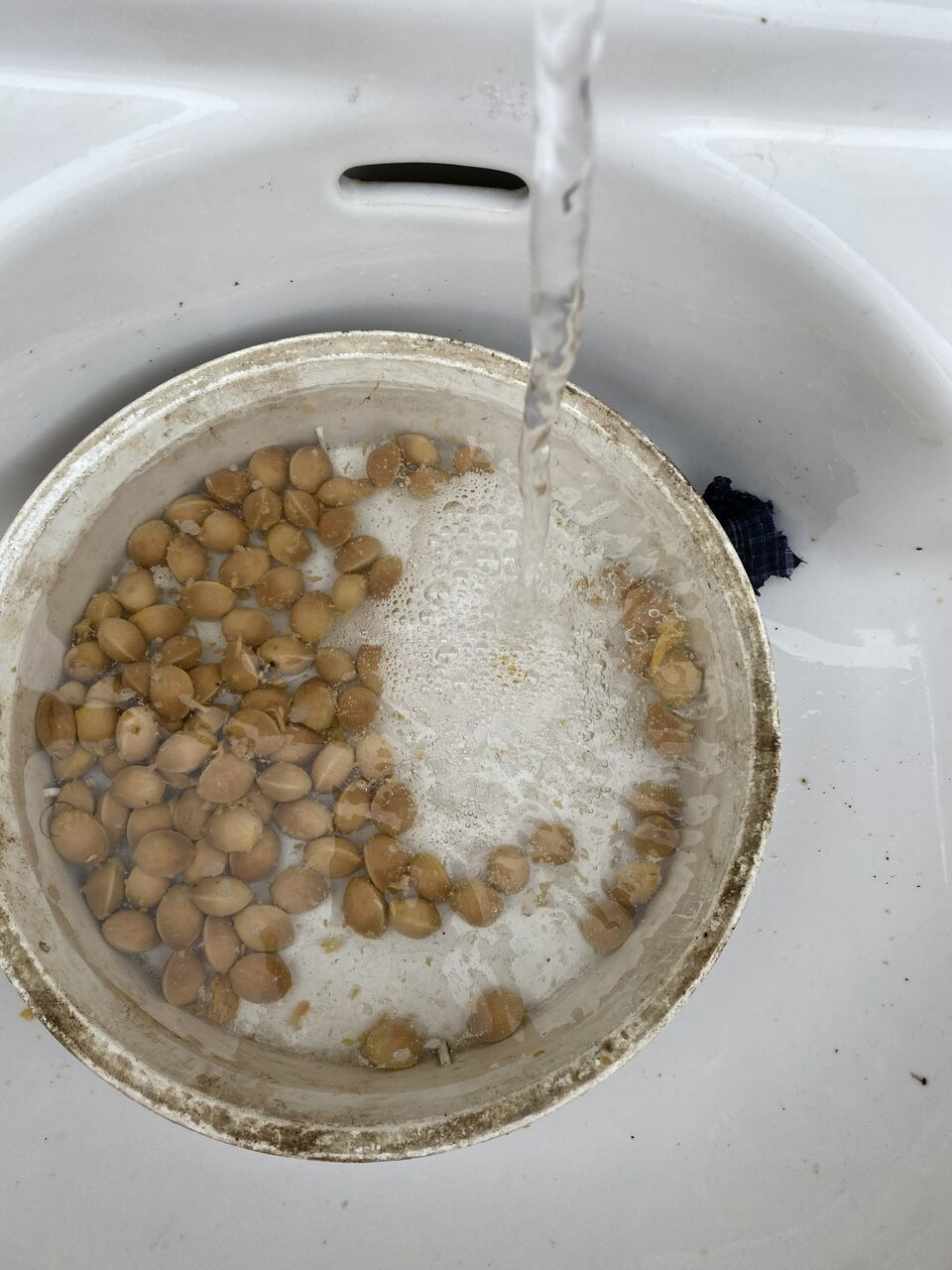種を洗って、残っている果肉をきれいに落とします。