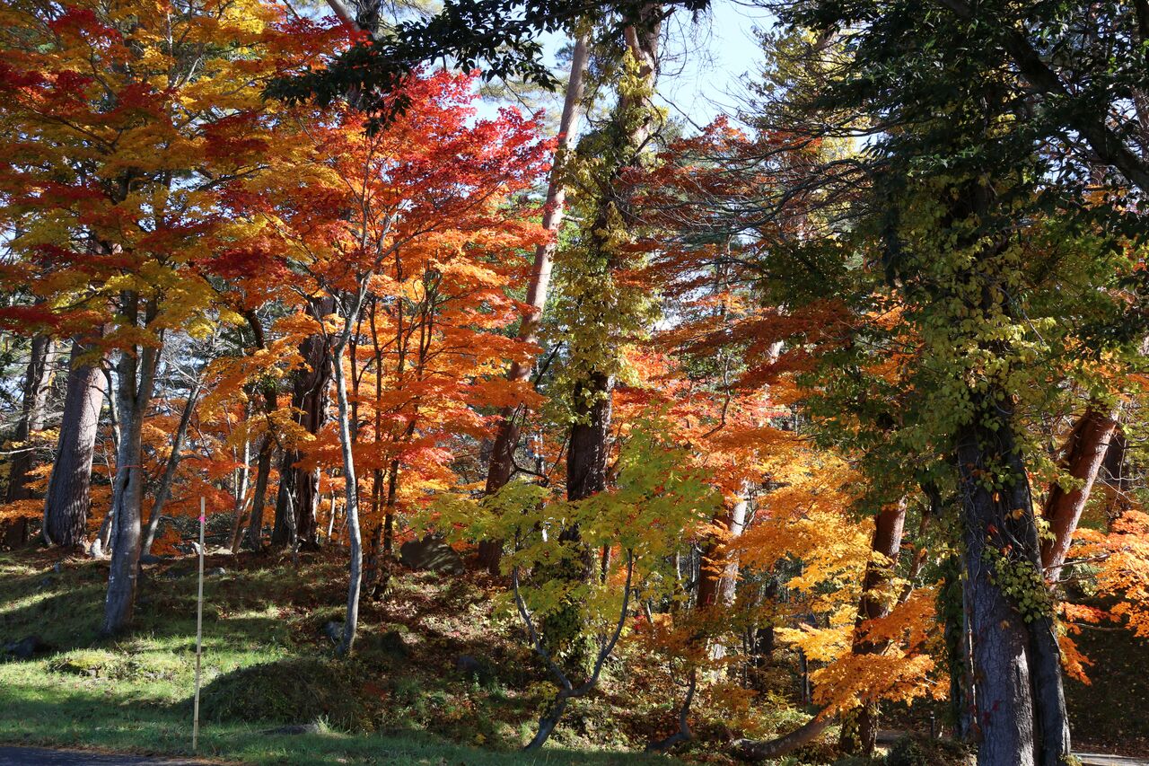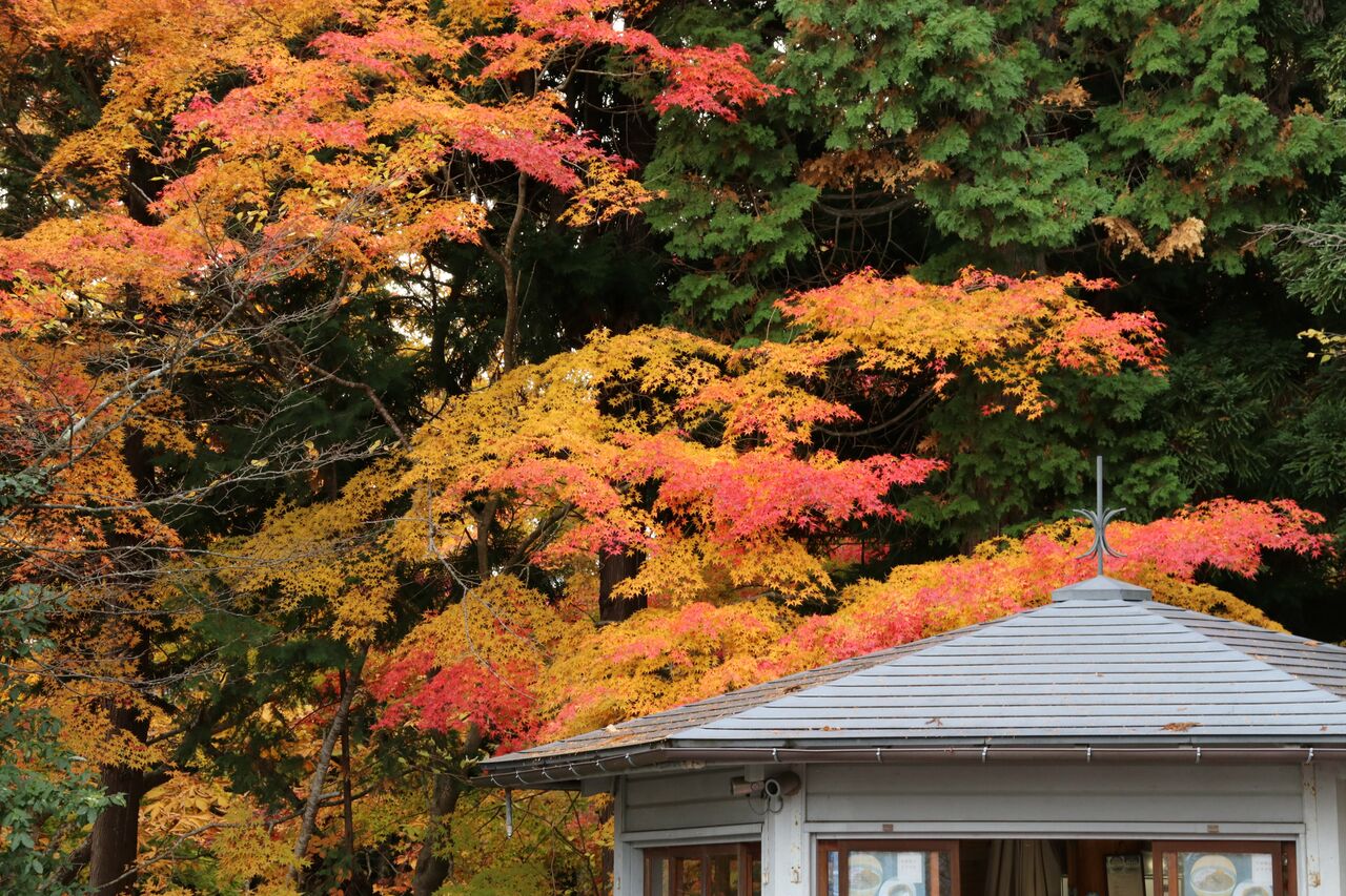 天鏡閣の紅葉が美しいとのことでしたが、標高が下がったため町の紅葉はあまり進んでいません。わざわざ天鏡閣に寄ることが正解かどうか不安でしたが・・・・。