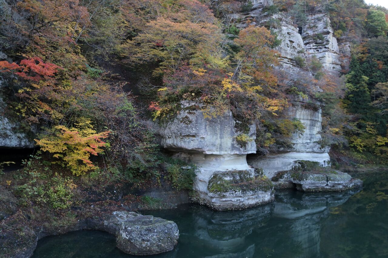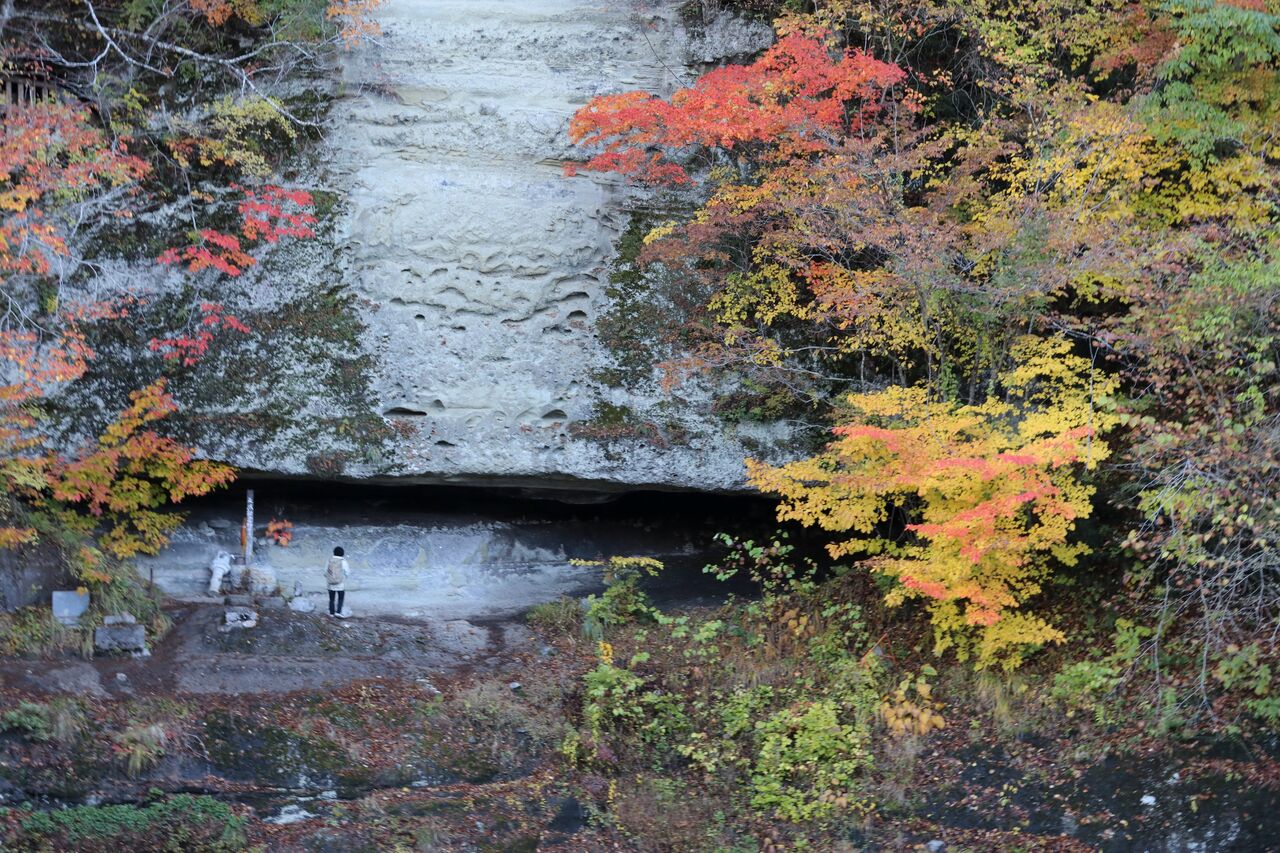 「へつり」とは川に迫った崖のこと。写真のように、ここの「へつり」は塔のように立っています。案内板によると10本の塔があるようですが、全てを見つけることはできませんでした。