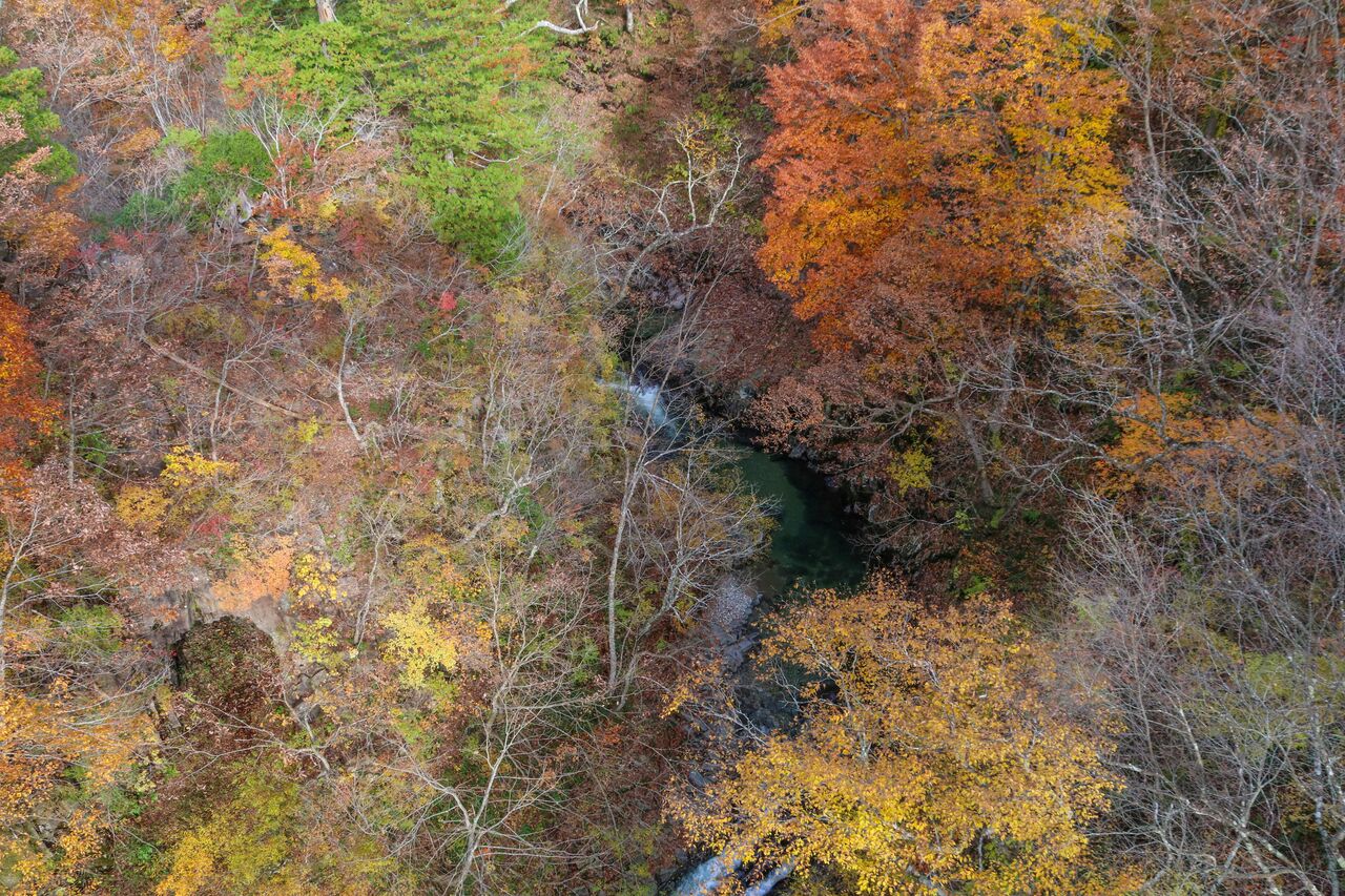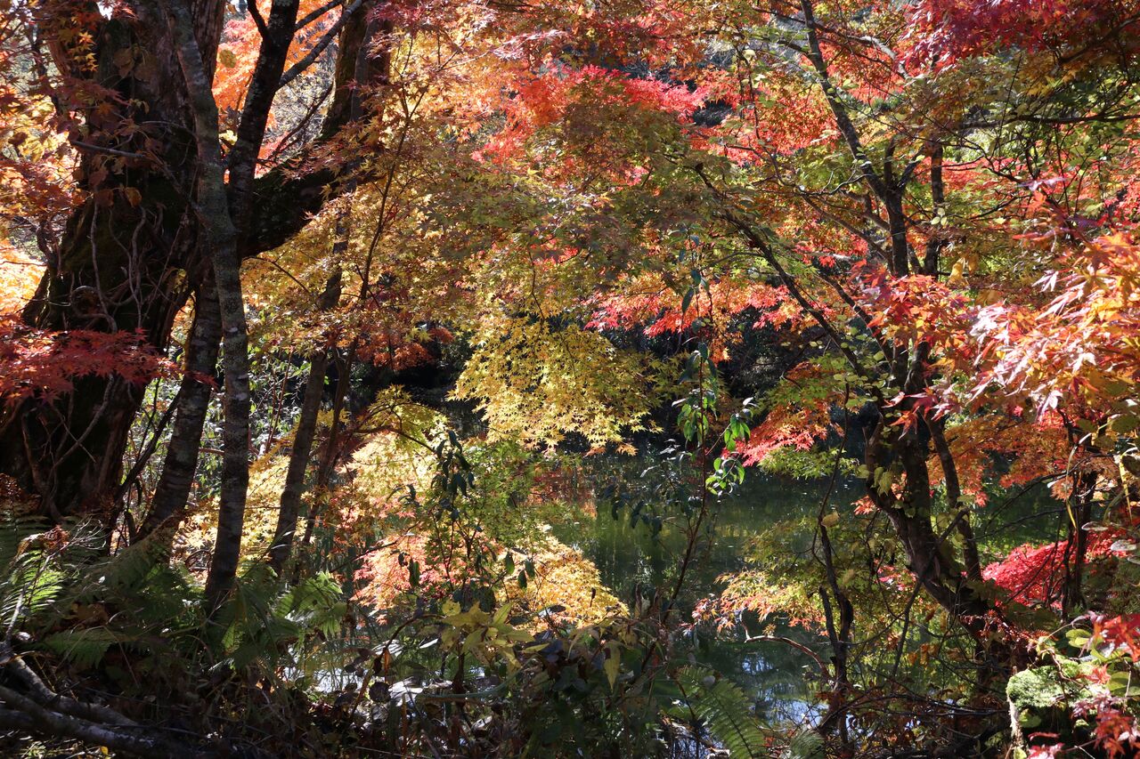この場所は国道459号から県道に入ったところにあるのですが、その459号は紅葉に包まれた美しい道路でした。なかなか車を停めるスペースが無かったのでベストショットではないですが、何枚か撮影しました。