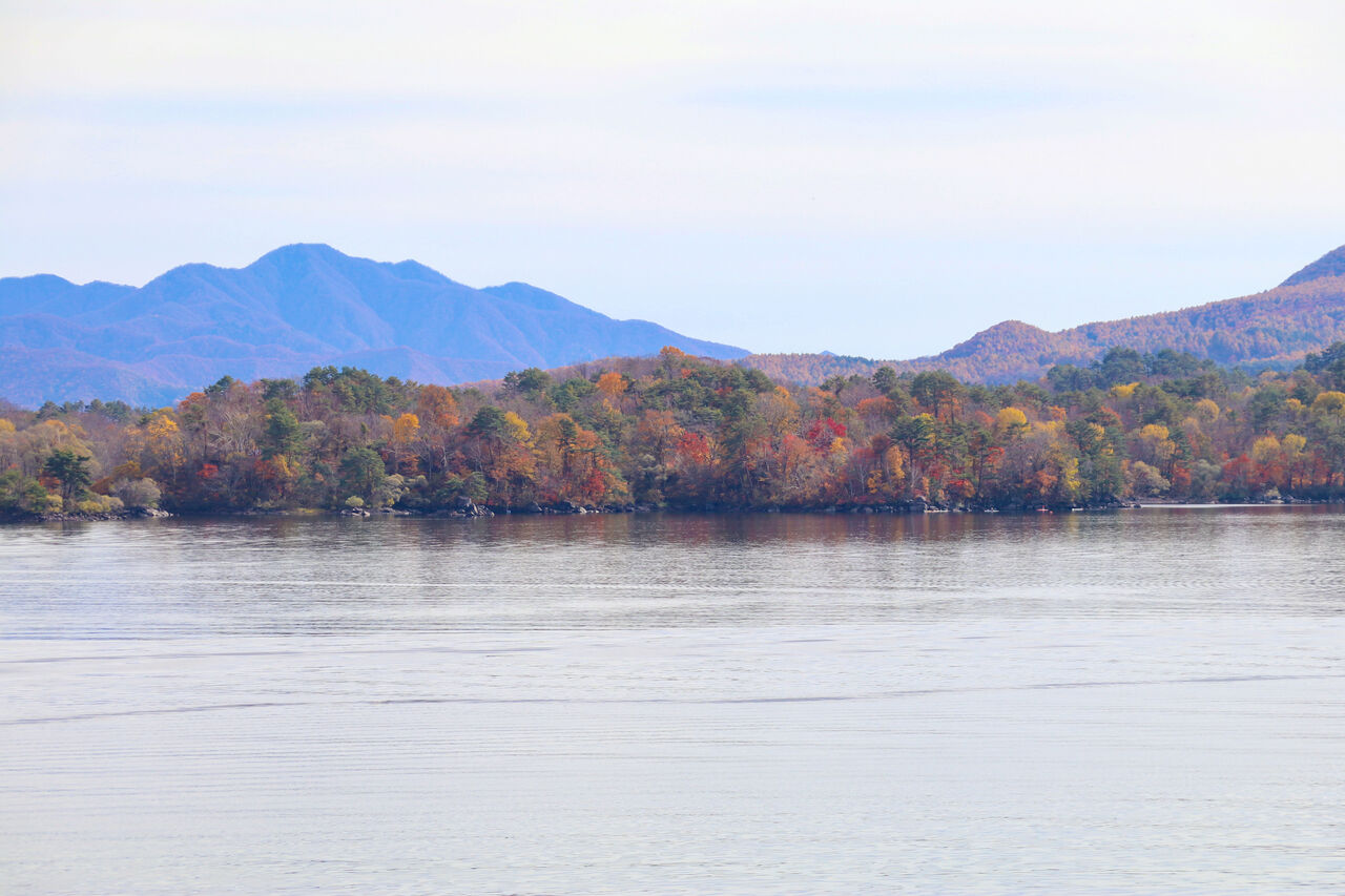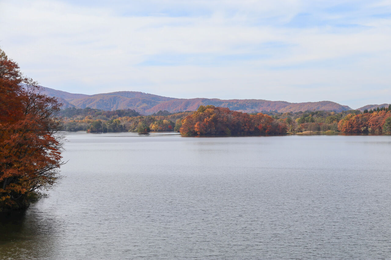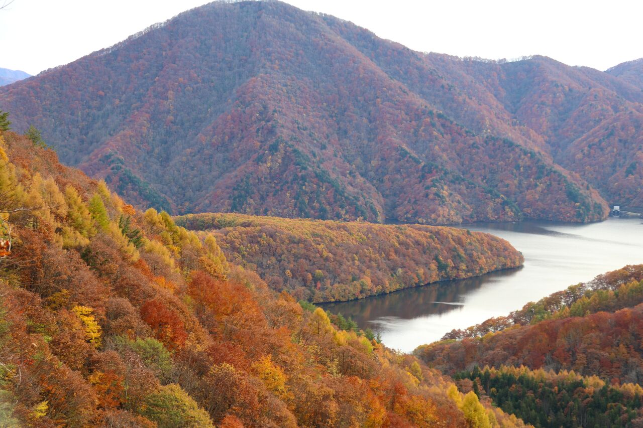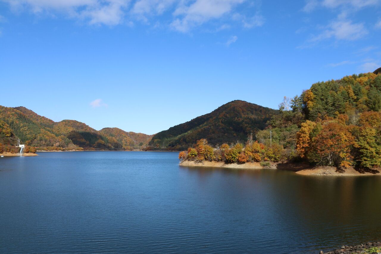 この三湖パラダイスの先にも小さな駐車スペースが何か所かあって各所で違った顔の秋元湖を観ることができます。