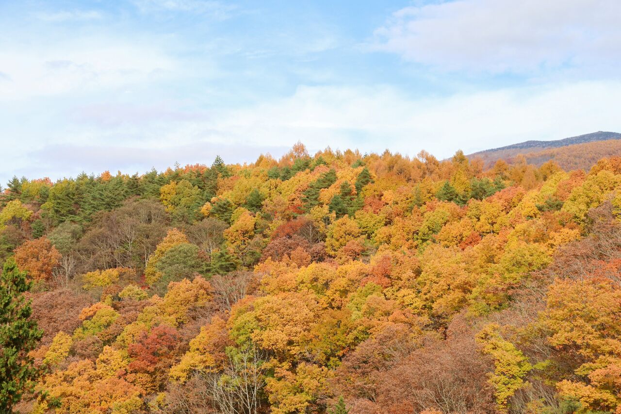 これで探勝路は終わりです。大通りに出るとその向こうにはリゾートホテルがあり、周辺は奇麗な紅葉でした。