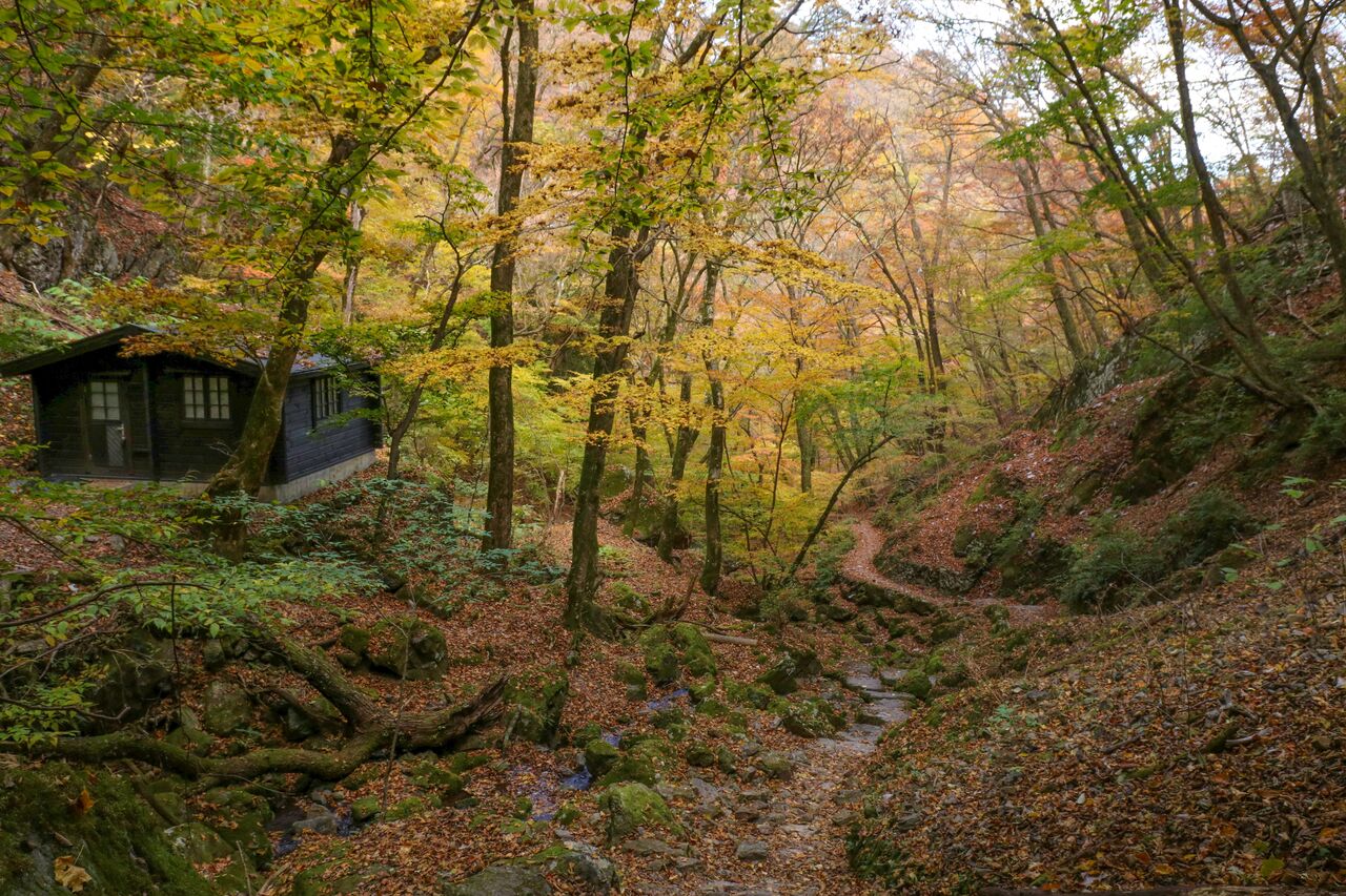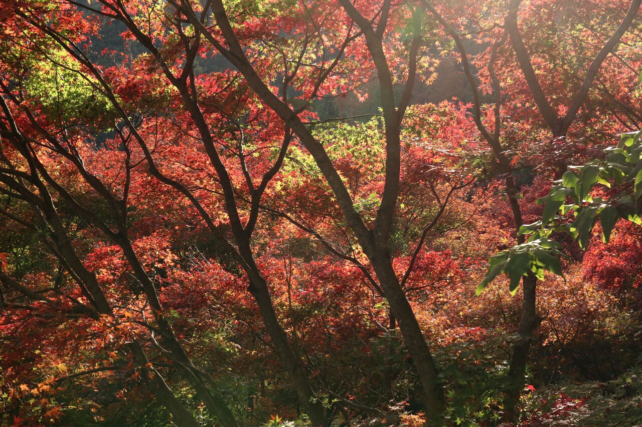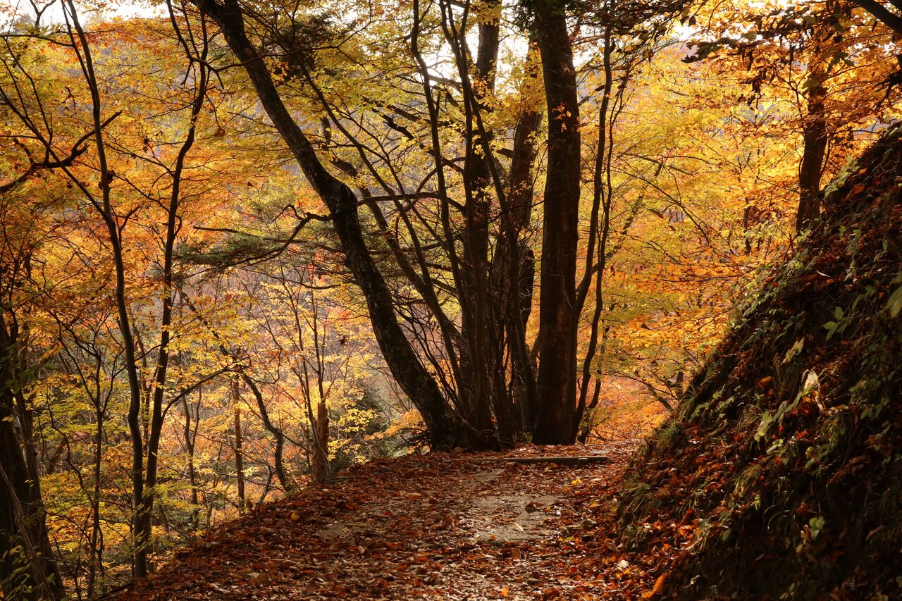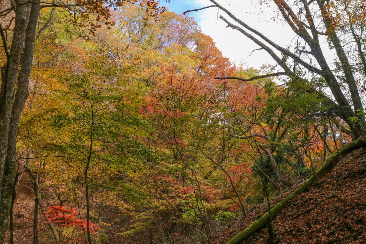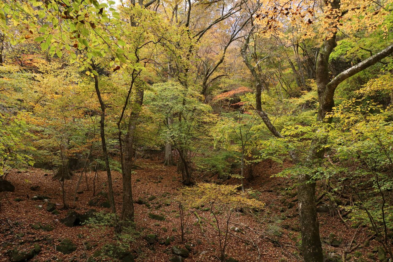 しばらく歩くと、紅葉の森が見えてきました。