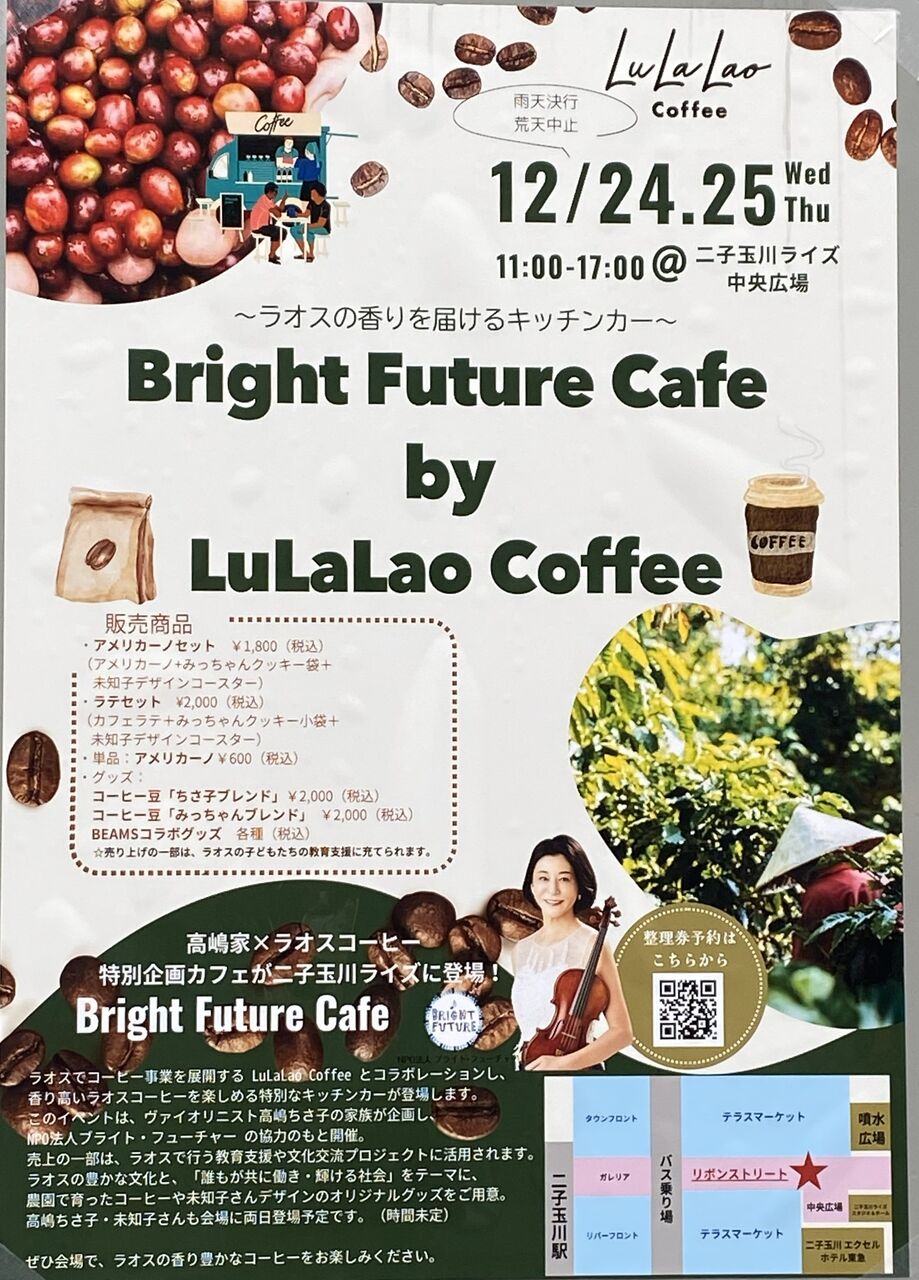 本日の二子玉川riseには、高嶋ちさ子ファミリーとラオスのコーヒー会社がコラボしたキッチンカーが登場していました。昨日も出店していたようです。