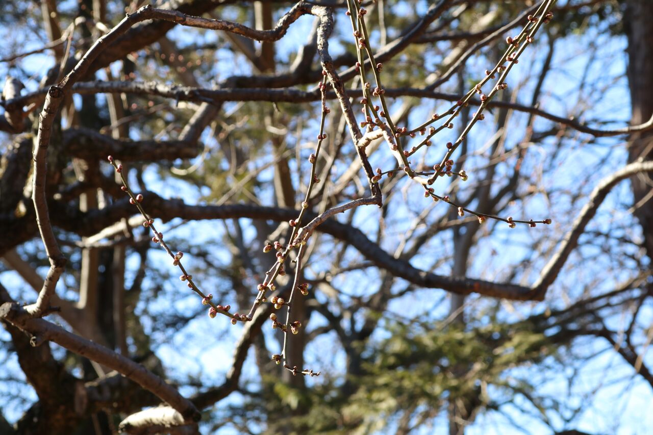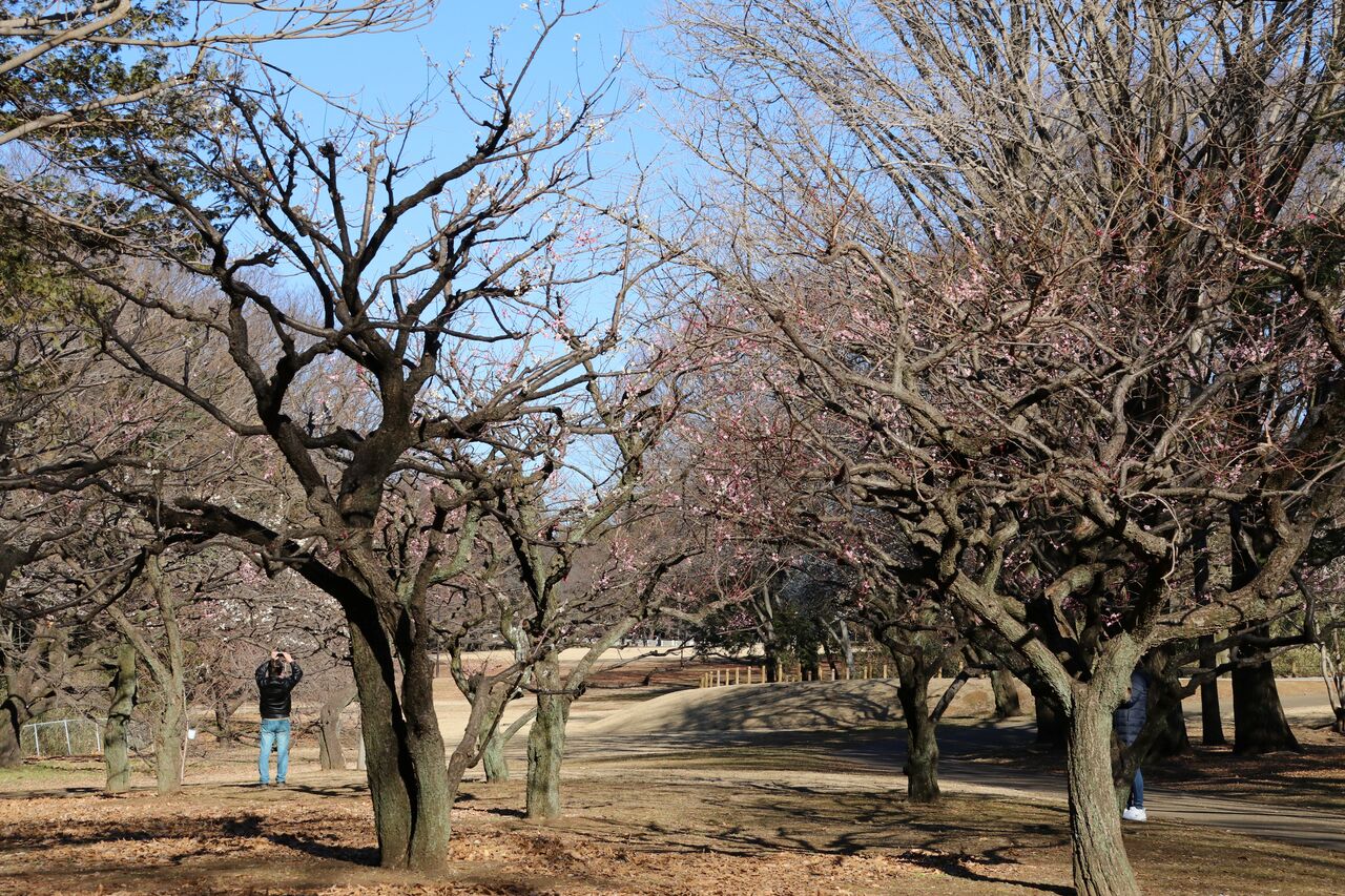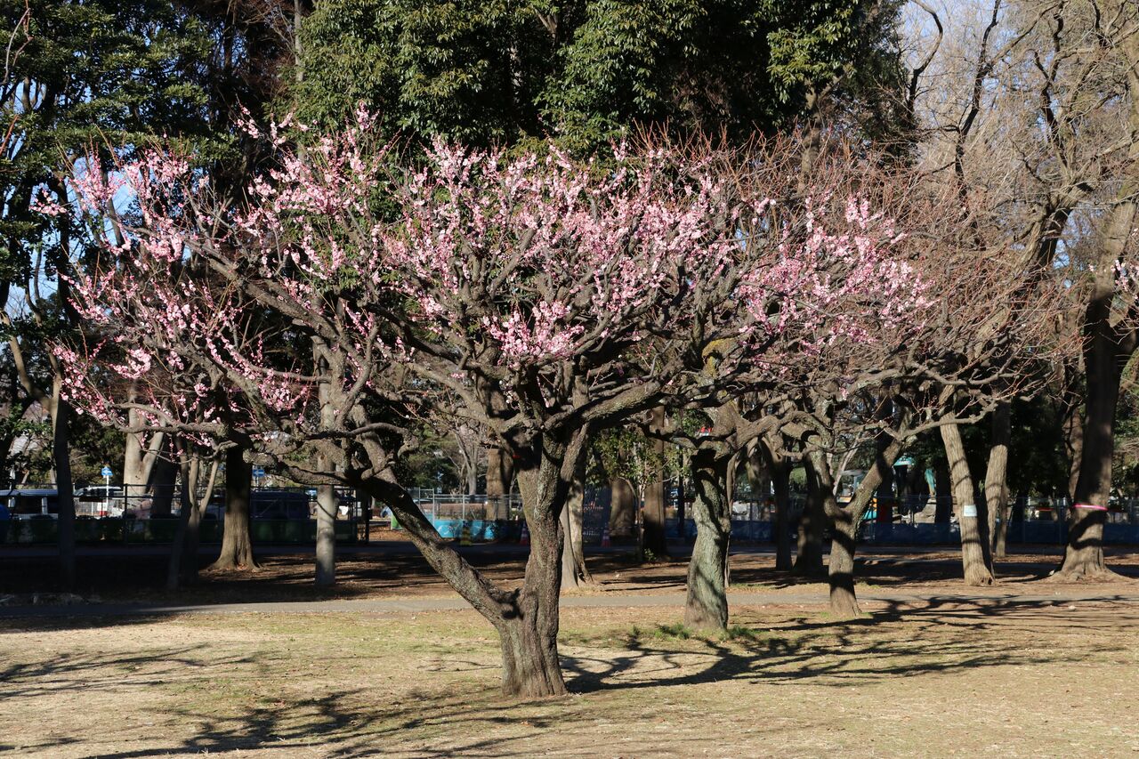 年明け後、義太夫堀公園、熱海梅園の梅を見てきましたが、両方とも早咲きの梅です。砧公園は特に早咲きの梅ではないと思うので、まだ咲いていないだろうなと思いつつ散歩に行ってみると・・・