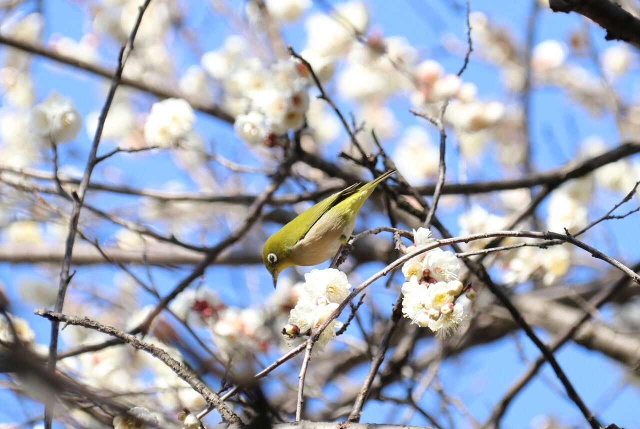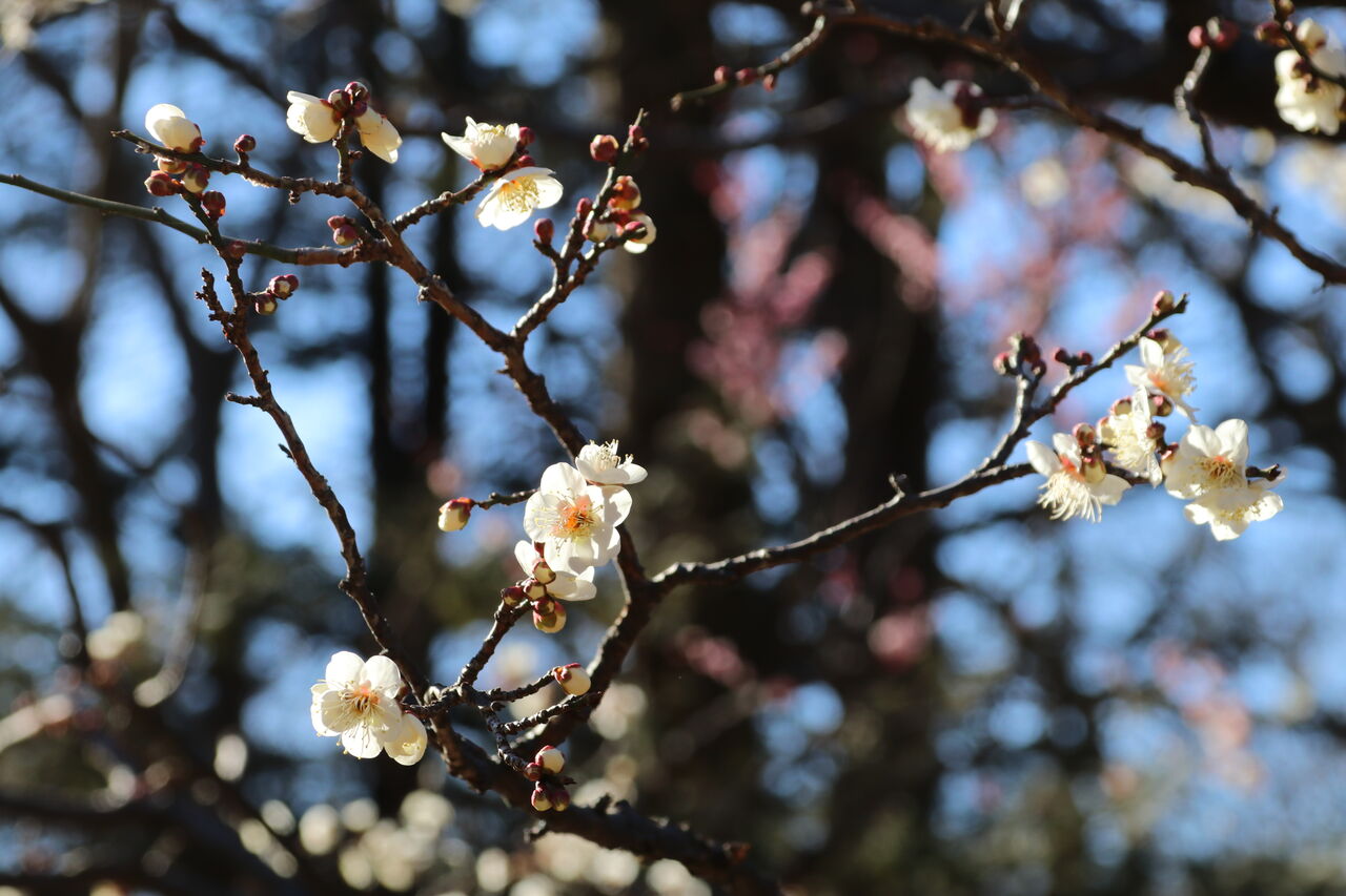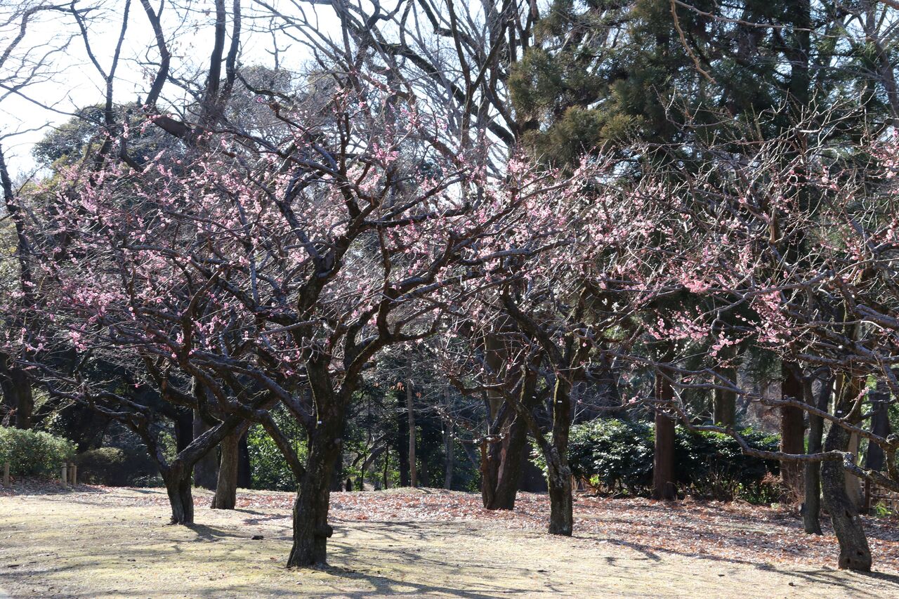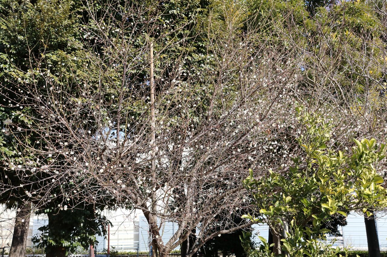年明け後、義太夫堀公園、熱海梅園の梅を見てきましたが、両方とも早咲きの梅です。砧公園は特に早咲きの梅ではないと思うので、まだ咲いていないだろうなと思いつつ散歩に行ってみると・・・