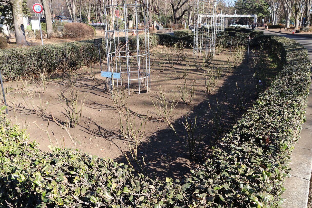 大蔵運動公園の方に行ってみると、年末に来た時はまだ結構花が咲いていた薔薇園に、全く花が無くなっていました。