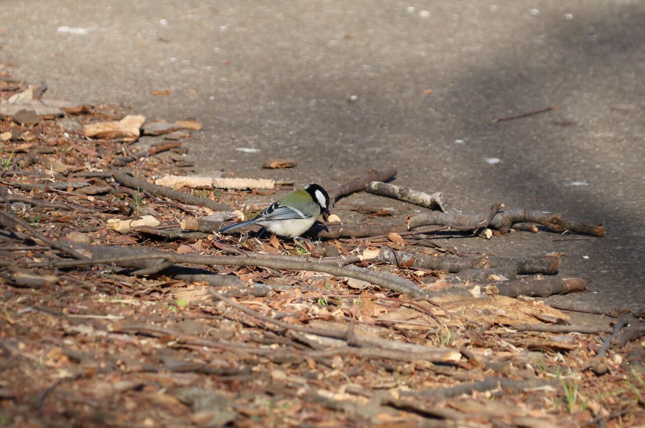 シジュウカラです。木には食べ物が無いのでしょう、しきりに舞い下りて地面を啄ばんでいます。